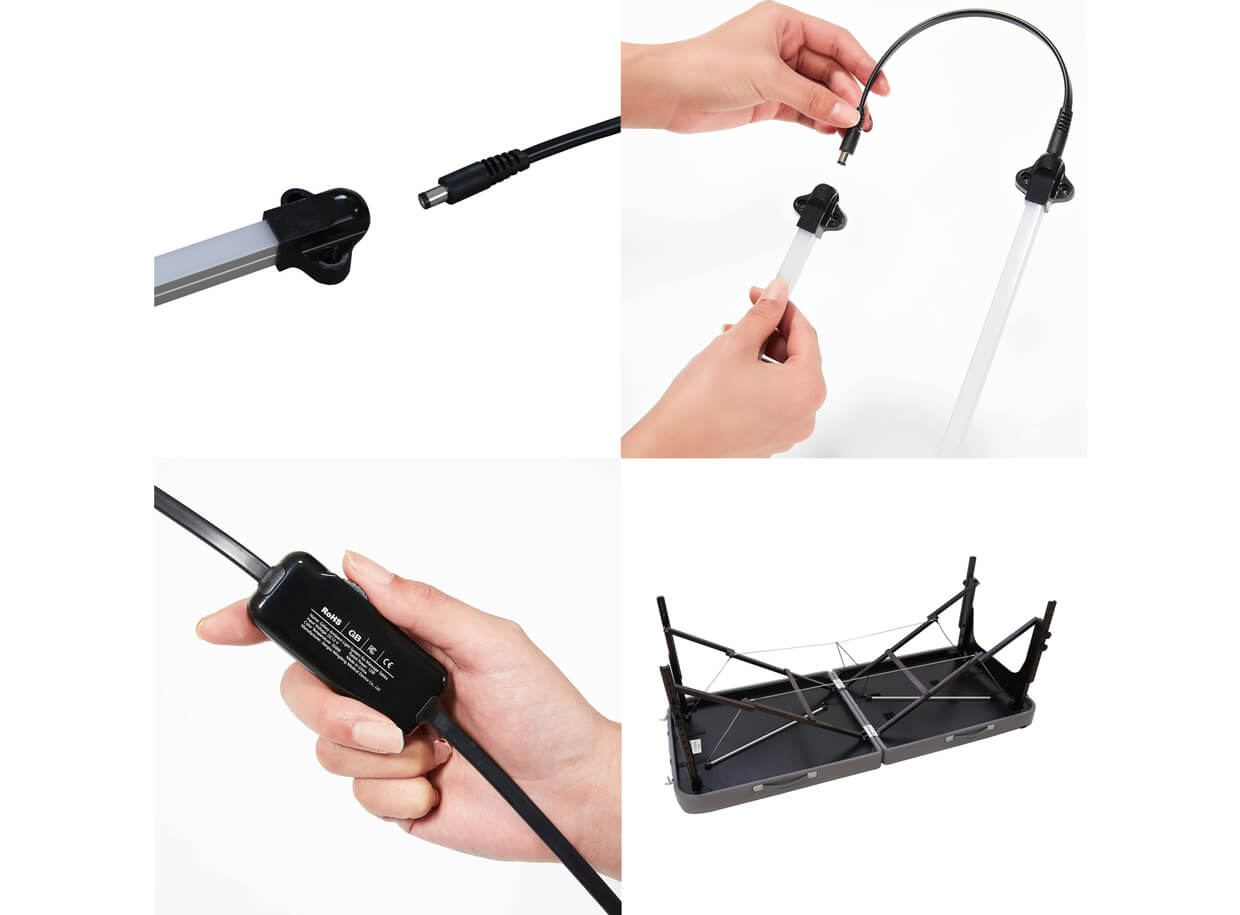 Osvetľovacia sústava obsahuje dva LED pásy s dĺžkou 70 cm, ktoré sú zasadené v hliníkovej konštrukcii. Súčasťou balenia je prepojovací kábel pre LED pásy, kábel s ovládačom jasu, napájací adaptér s dĺžkou kábla 2 m a sada samorezných skrutiek do dreva.