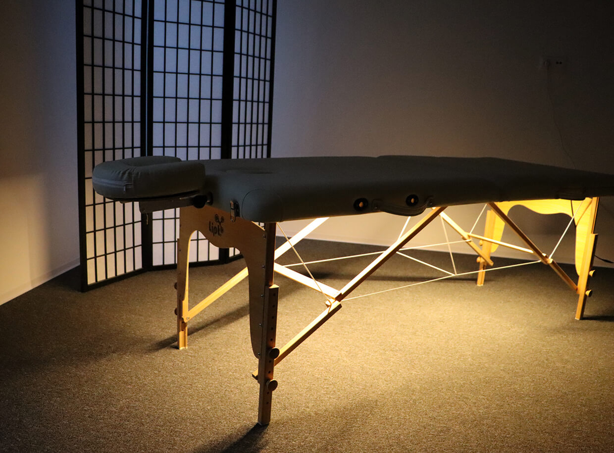 Svetelné pásy umiestnite do vhodnej pozície na drevenú plochu v spodnej časti masážneho stola. Pre pripevnenie pásov použite samorezné skrutky, ktoré sú súčasťou balenia. Ak nepoznáte hrúbku drevenej dosky a obávate sa, že hrot samoreznej skrutky ju môže presiahnuť, na inštaláciu je možné použiť obojstrannú lepiacu pásku. To platí aj v prípade, že inštalujete osvetlenie na nábytok, prípadne na povrch, ktorý nechcete poškodiť skrutkami. Do konektorov zapojte prepojovacie káble, adaptér zapojte do elektrickej siete a ručným ovládačom si nastavíte intenzitu osvetlenia.