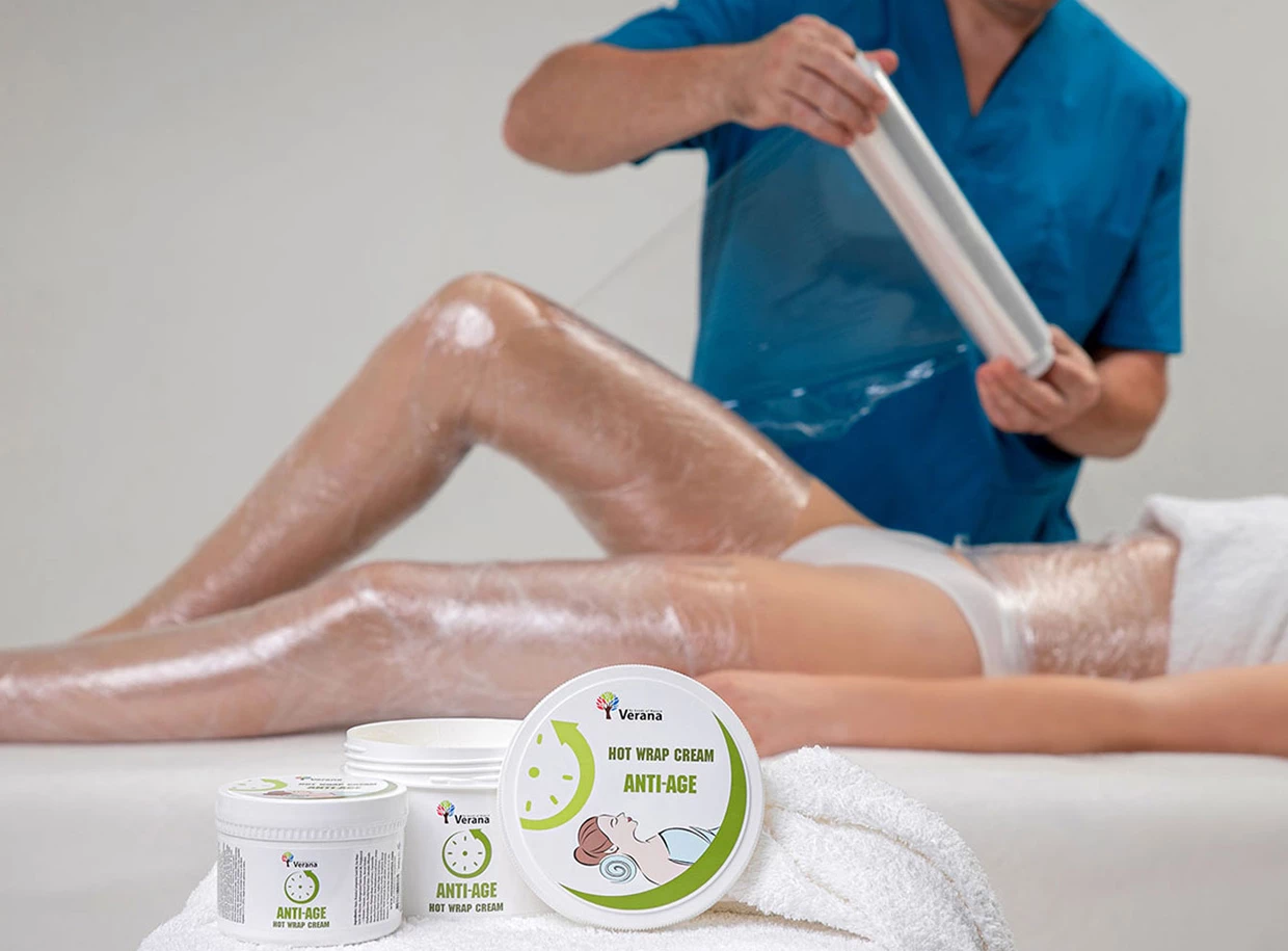 Verana omladzujúci horúci telový zábal Anti age bol vytvorený pre účinnú starostlivosť o telo počas kozmetickej procedúry Hot Wrap v SPA salónoch aj doma. Je vyrobený na vodnej báze, vďaka čomu dokážu jeho zložky preniknúť hlboko do všetkých vrstiev pokožky. Krém tak účinne hydratuje a vyživuje pokožku počas celej zábalovej procedúry.