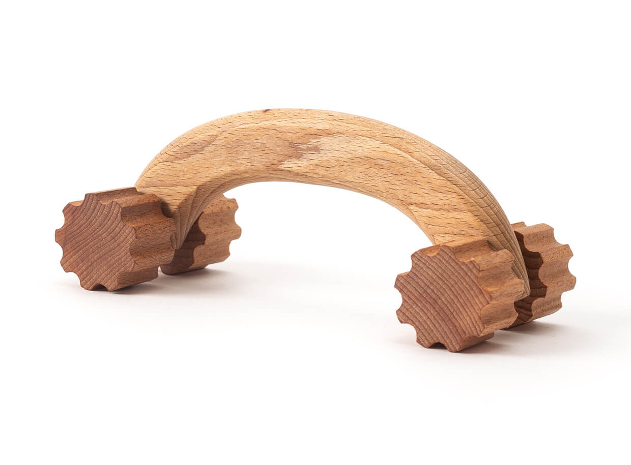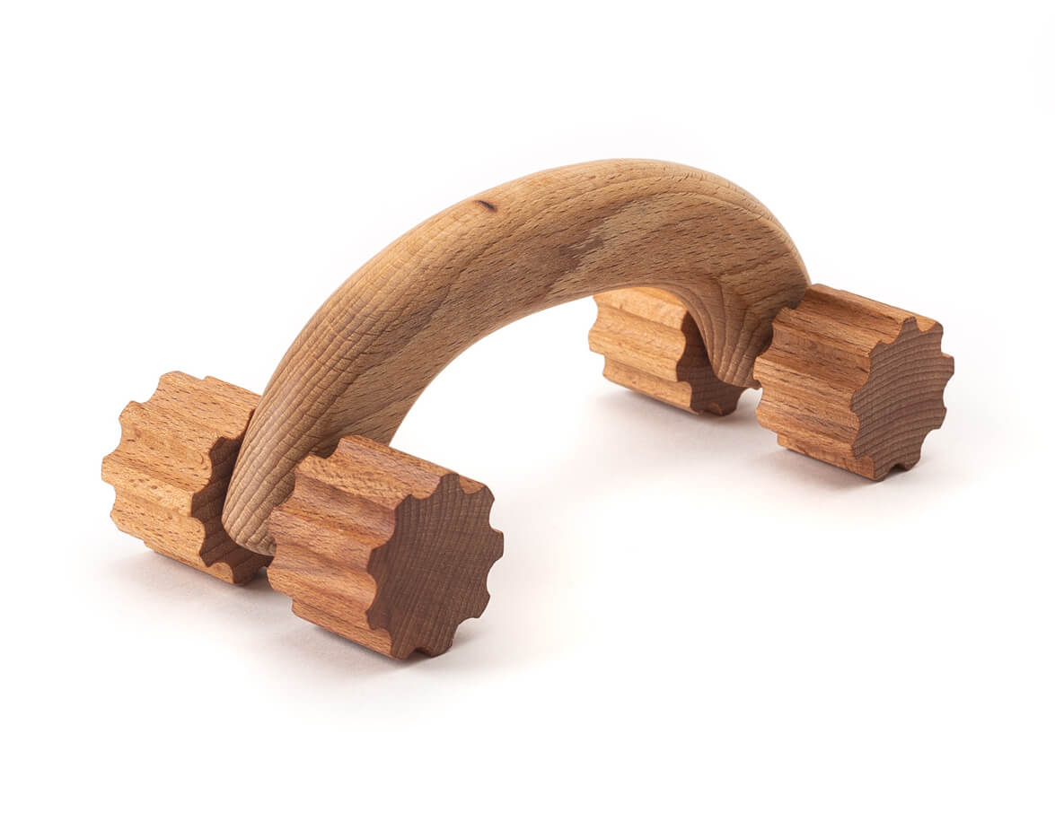 Je vyrobený z kvalitného a pevného bukového dreva, ktoré má dlhú životnosť. Masažér má ergonomickú rukoväť a 4 masážne valčeky, ktoré dôkladne premasírujú unavené a napäté svalstvo. Pri intenzívnejšej masáži dokážu valčeky preniknúť hlboko do tkaniva a poskytnúť väčšie uvoľnenie.