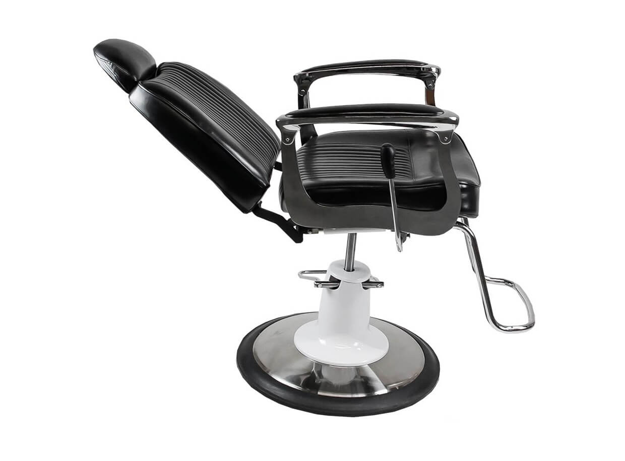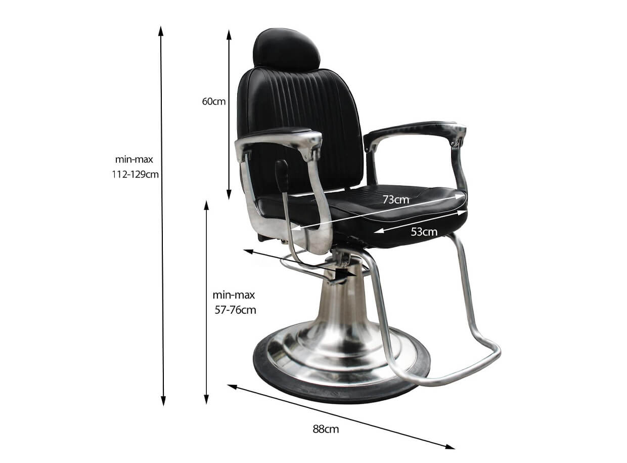 Kreslo, ktoré má štýl, vhodné do každého holičstva, kaderníctva a barber-shopu. Pevný oceľový rám, nosnosť až 160kg, výška 112-129 cm nastavovaná hydraulickou pumpou.