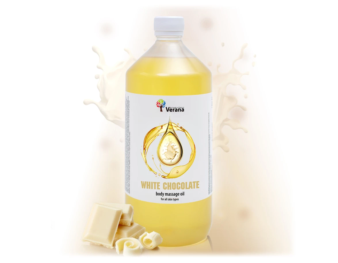 Masážny olej Biela čokoláda so 100% prírodným kakaovým maslom. Obsahuje rad vitamínov, bielkovín a biologicky aktívnych látok pre starostlivosť o pokožku. Má príjemnú, sladkú vôňu, ktorá počas procedúry navodzuje ukľudňujúcu a relaxačnú atmosféru.