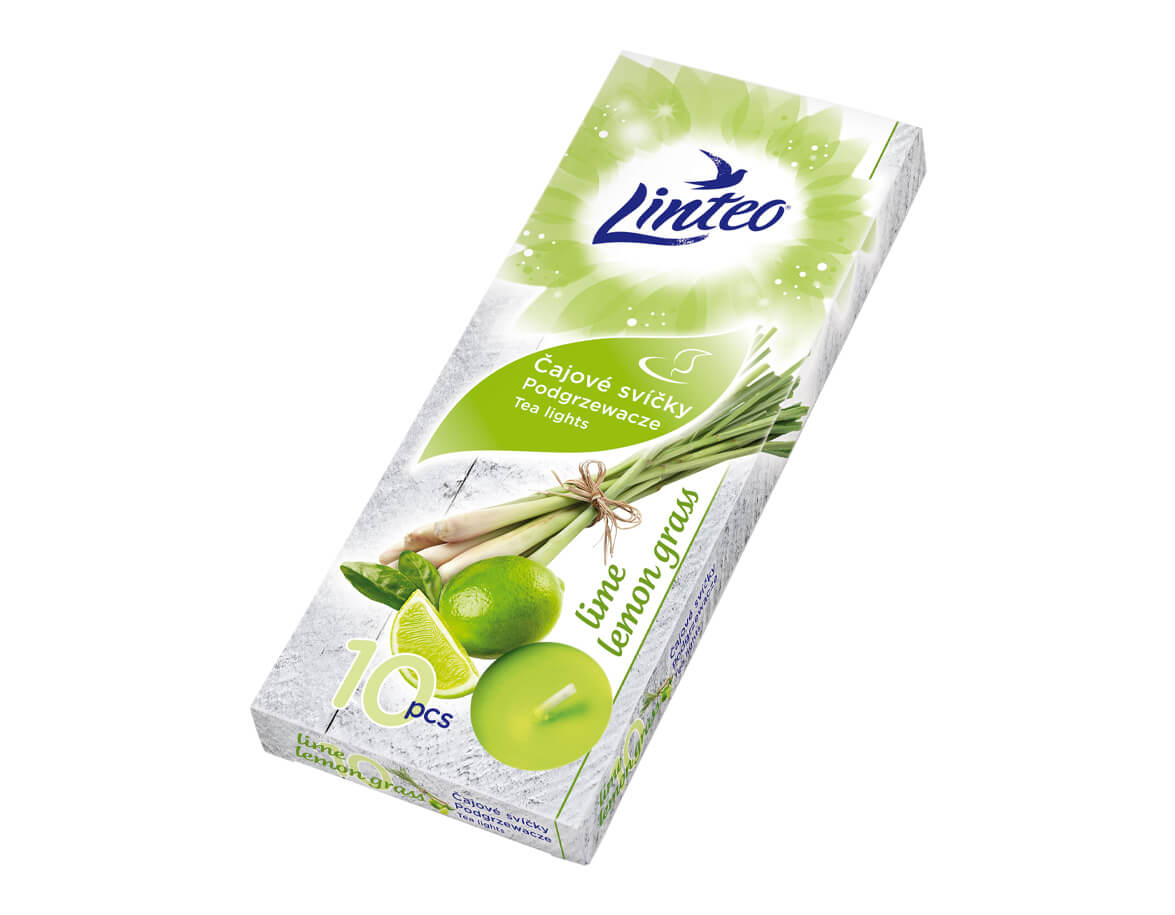 Čajová sviečka v hliníkovej mištičke, balenie 10ks, s vôňou limetky a citrónovej trávy. Vhodné do soľných lámp, aroma lampičiek, svietnikov, pre vytvorenie príjemnej atmosféry.