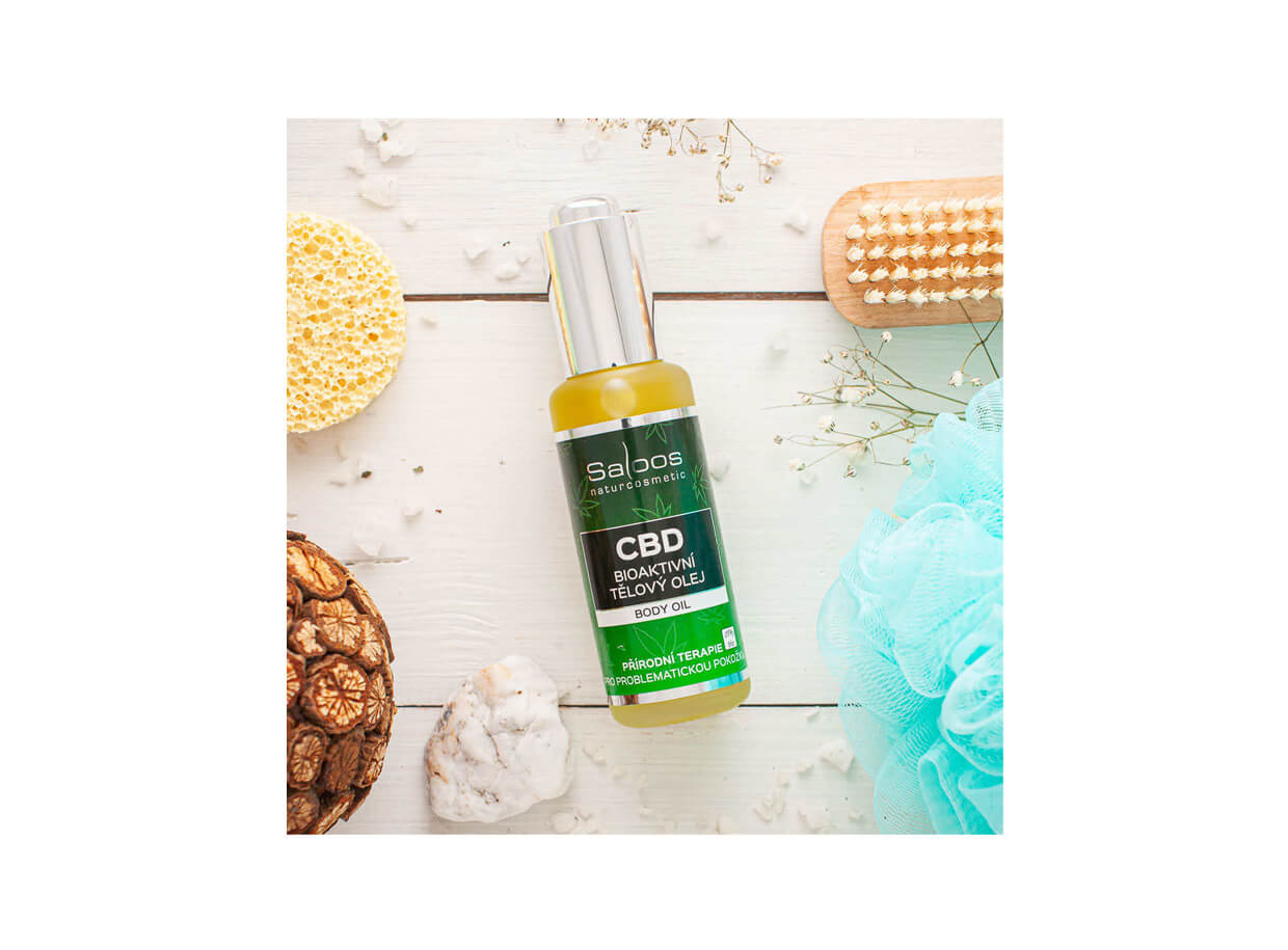 CBD bioaktívny telový olej SALOOS poskytuje dôkladnú starostlivosť o problematickú pokožku.