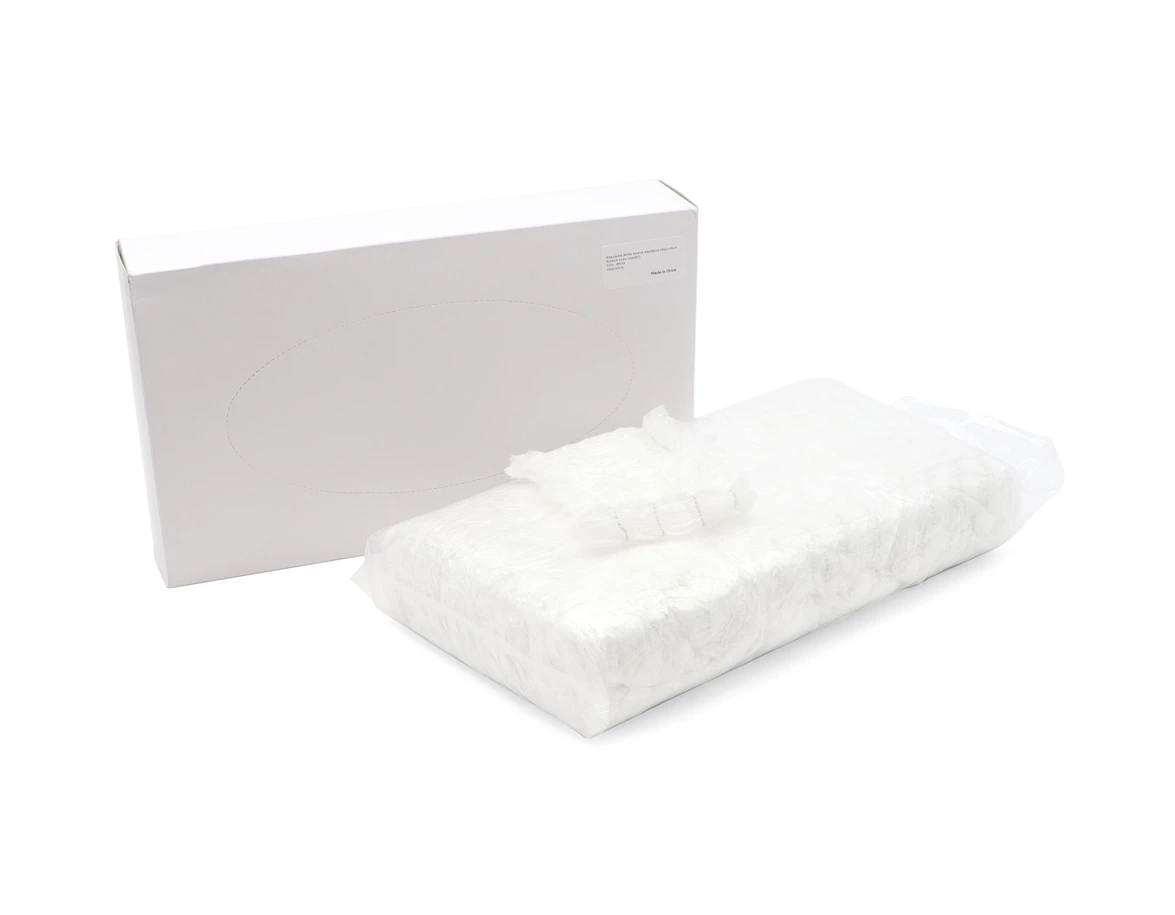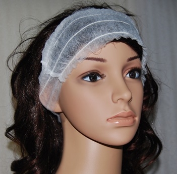Biela čelenka zhotovená z netkanej textílie, určená na jednorazové použitie.
