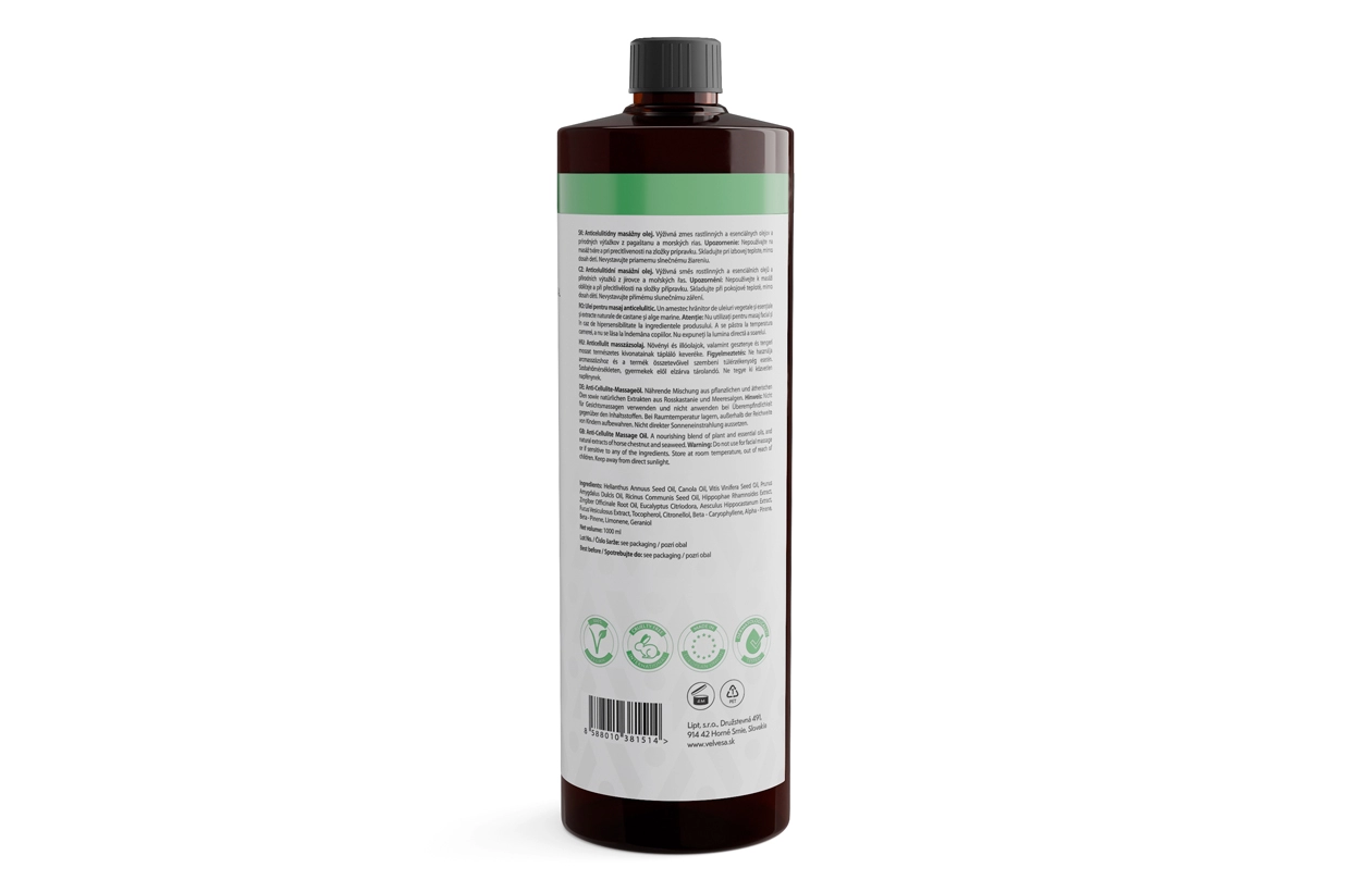 Anticelulitídny rastlinný masážny olej CellaBella Algae od velvesa zaujme originálnou, jemne pikantnou, korenistou vôňou a 100 % prírodným zložením. Vyživujúca zmes rastlinných olejov je doplnená o účinné prírodné extrakty zo zázvoru a citrónového eukalyptu, pagaštanu konského, morských rias a rakytníka, ktoré pomáhajú pri redukcii celulitídy, spevnení pokožky a podpore lymfatického obehu.