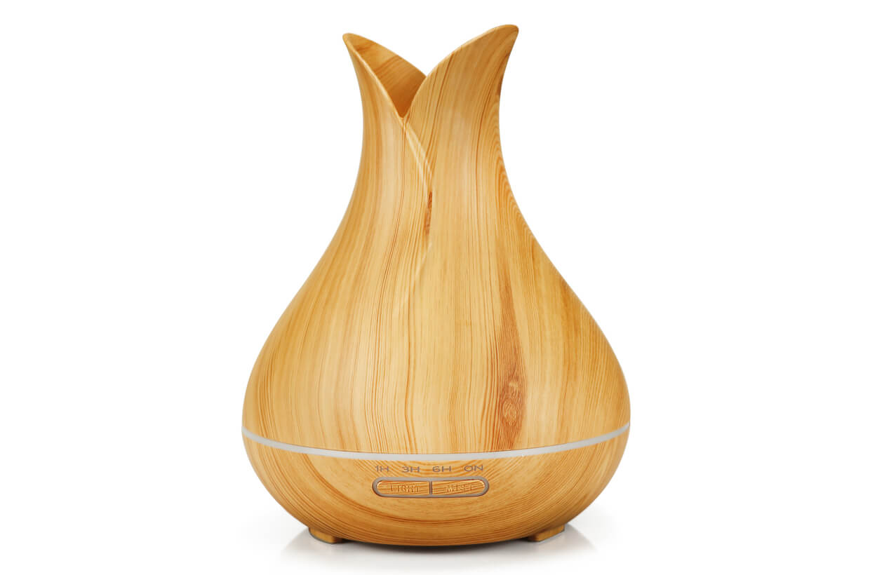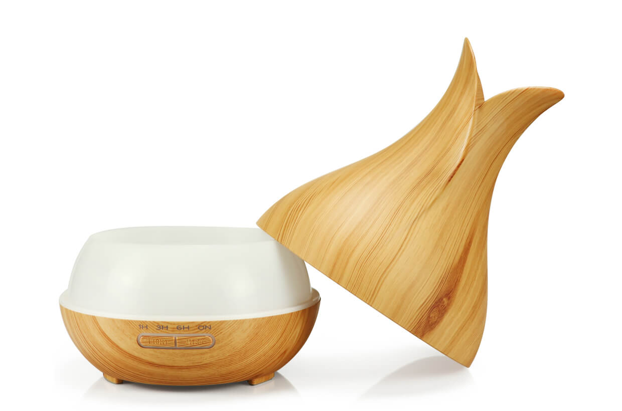 Ultrazvukový zvlhčovač vzduchu. Extra tichý (pod 35dB). Praktický a vkusný doplnok interiéru vo farbe bledého dreva.