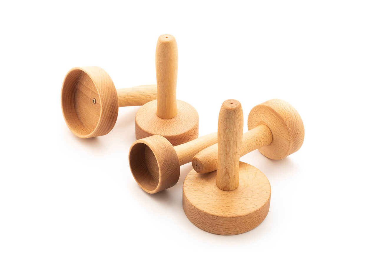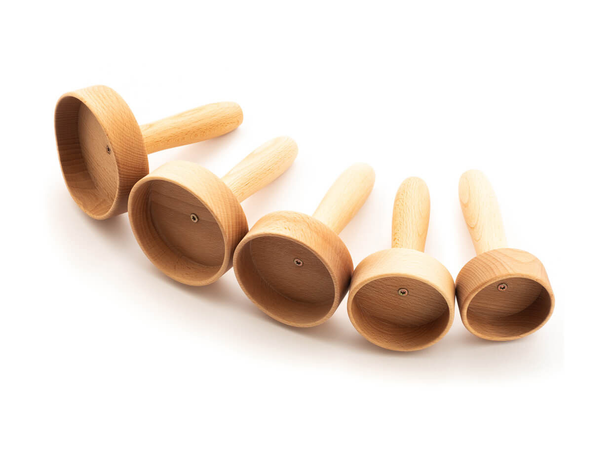 Drevené časti nástrojov pre maderoterapiu sú ošetrené impregnačným olejom na prírodnej báze, ktorý drevo chráni a predlžuje jeho životnosť. Nie sú lakované.