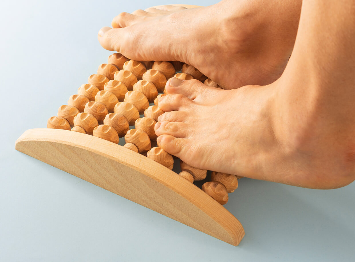 Drevený masažér na chodidlá s valčekmi
