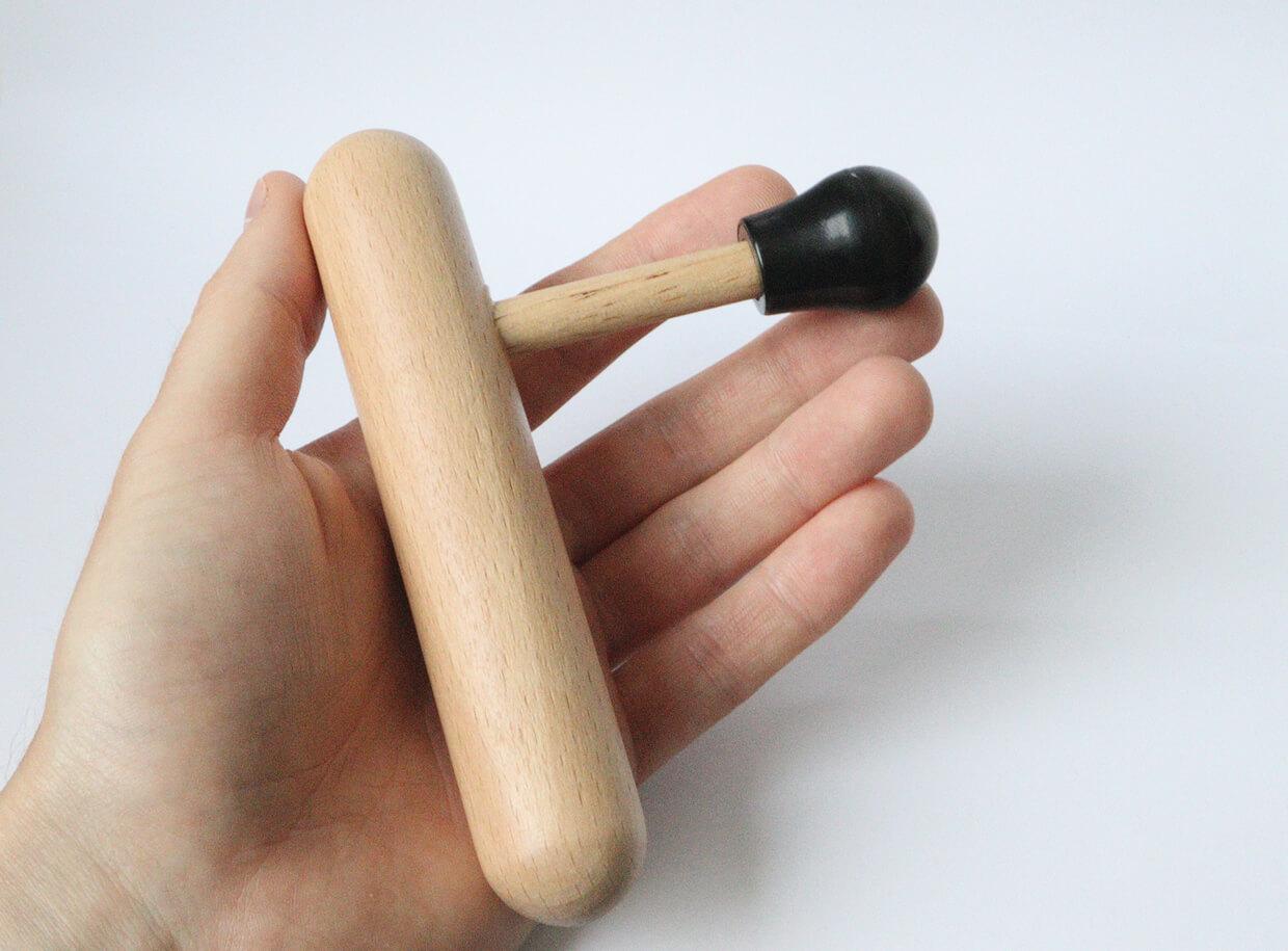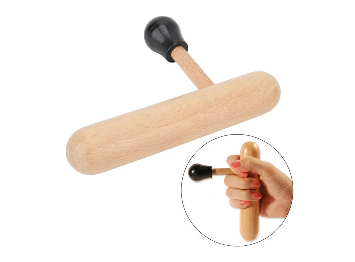 Masážna pomôcka z bukového dreva s plastovou špičkou určená na ošetrenie spúšťových bodov a bodovú hĺbkovú masáž, ktorá šetrí palec maséra a pomáha predísť únavovým zraneniam.