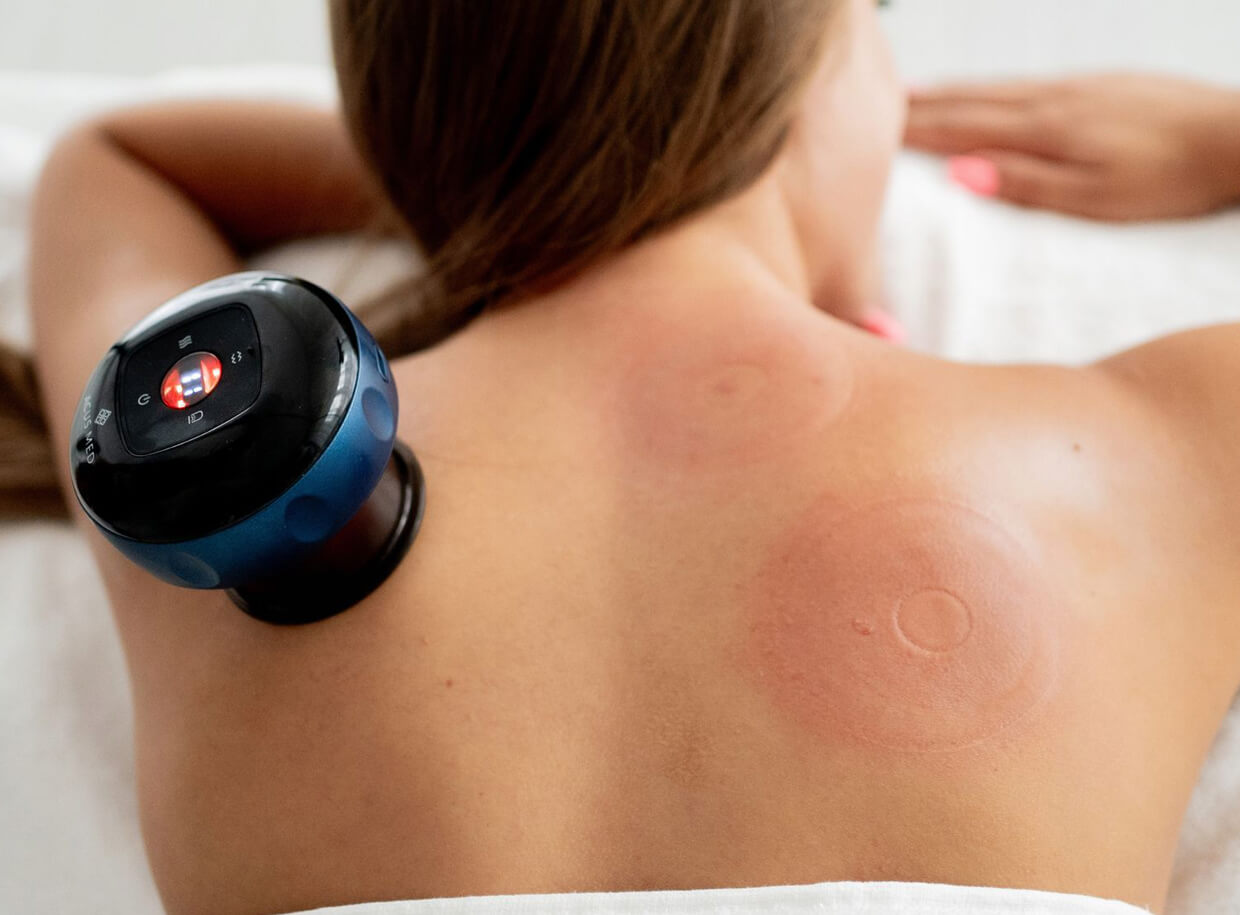 Banku podľa návodu vybavte čistým filtrom. Na ošetrované miesto naneste masážny olej, banku prikladajte priehľadnou časťou k pokožke. Zvoľte si úroveň tlaku a teploty. Dodržujte dostredivý smer masáže. Pri nepohodlí alebo nepríjemných pocitoch vypnite podtlak a banku odstráňte z tela. Pri masáži sa vyhnite oblasti hrudníka, tváre a krku.