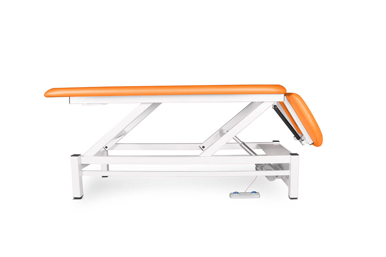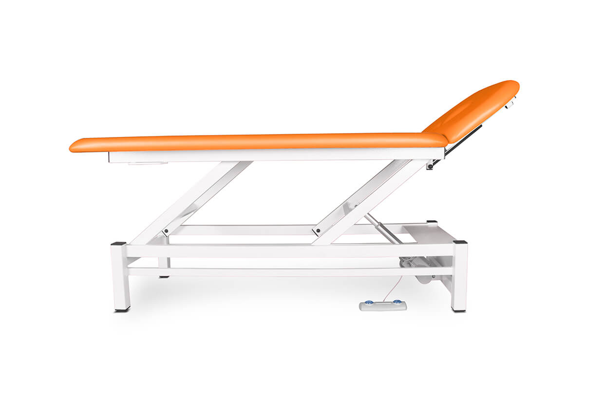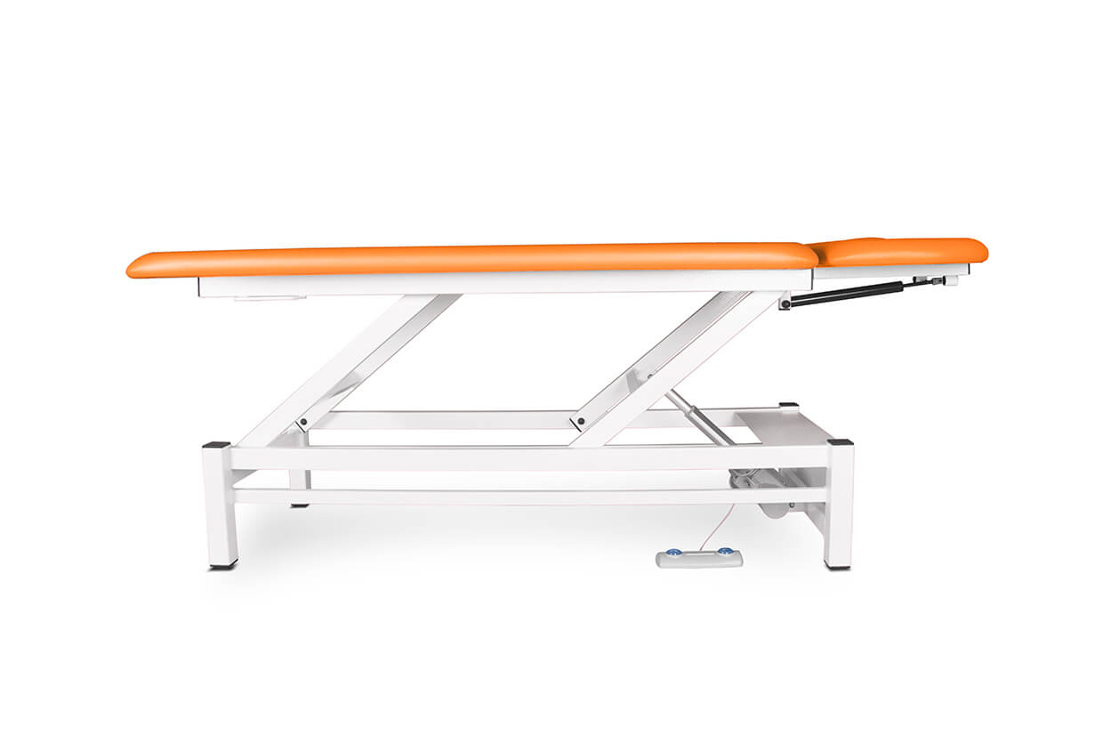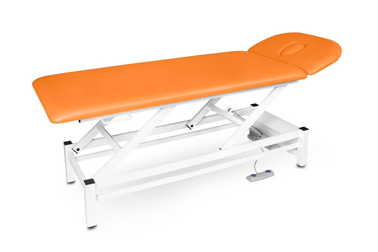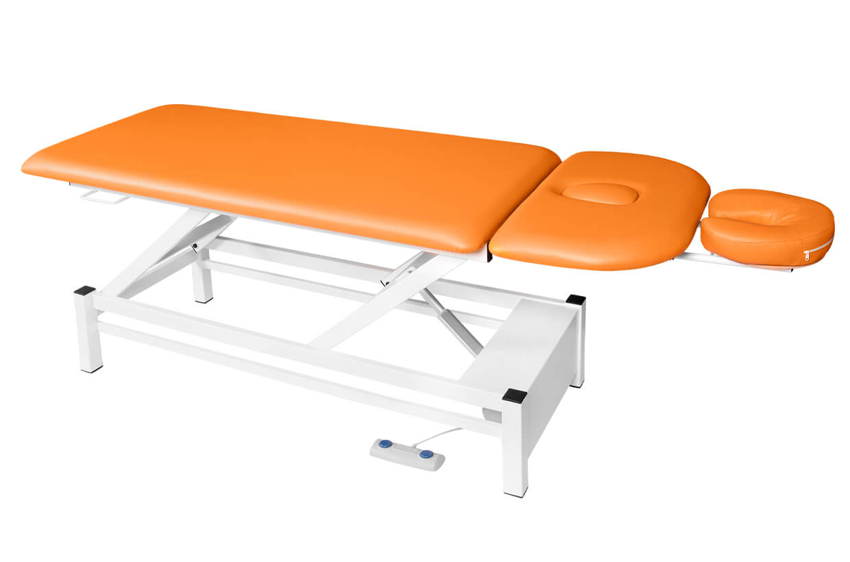 Profesionálne dvojdielne elektricky polohovateľné lehátko so spoľahlivým a tichým motorom vhodné pre masérov a fyzioterapeutov. Lehátko je pohodlne čalúnené 4 cm hrubým molitanom a kvalitnou, ľahko čistiteľnou koženkou a vybavené nastavovateľnými protišmykovými nožičkami. Vrchný diel lehátka sa dá polohovať pomocou plynovej vzpery. V cene lehátka je ručný ovládač.