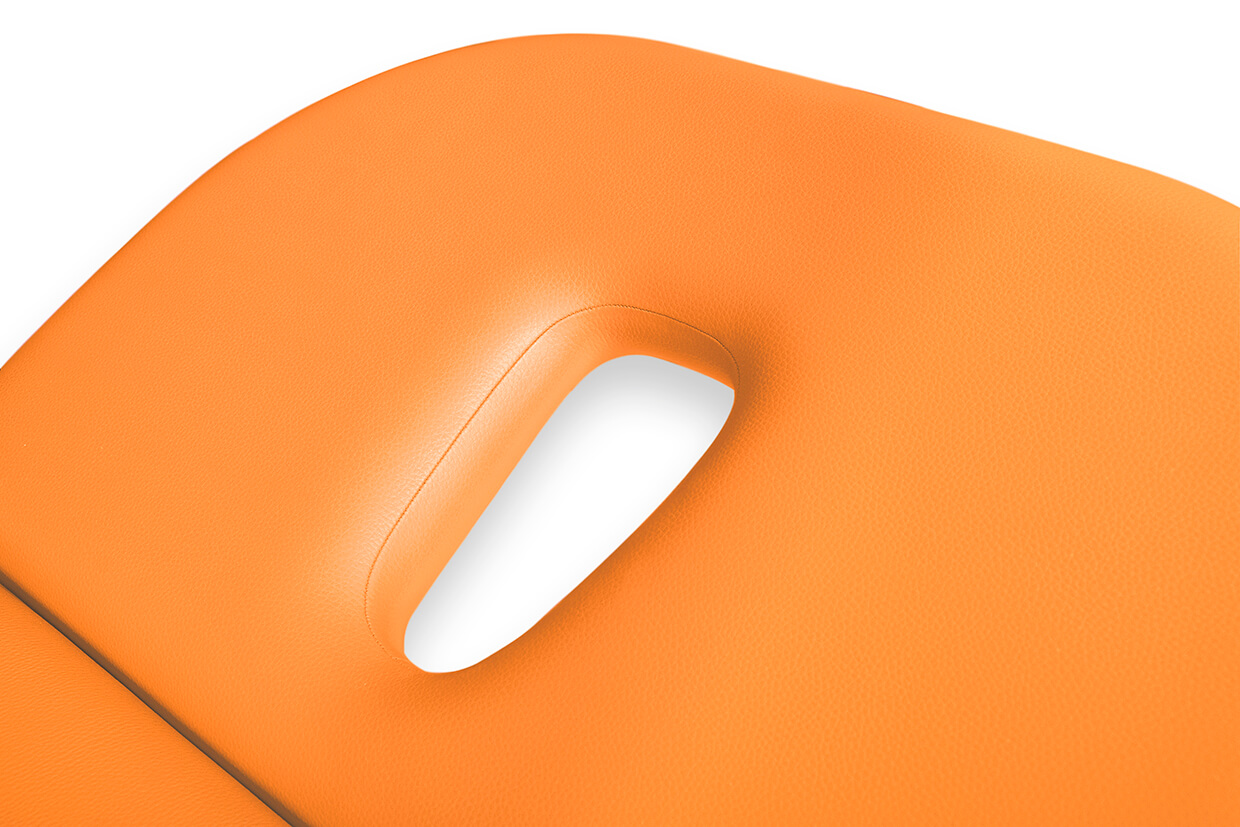 Najvyšší komfort pre klienta – železná konštrukcia držiaka podhlavníka je odolná a znesie aj neopatrné opretie sa. Podhlavník tvaru podkovy (30 x 30 cm) čalúnený vo farbe lehátka umožňuje pohodlné ležanie klienta na bruchu s uvoľneným chrbtom a krkom.