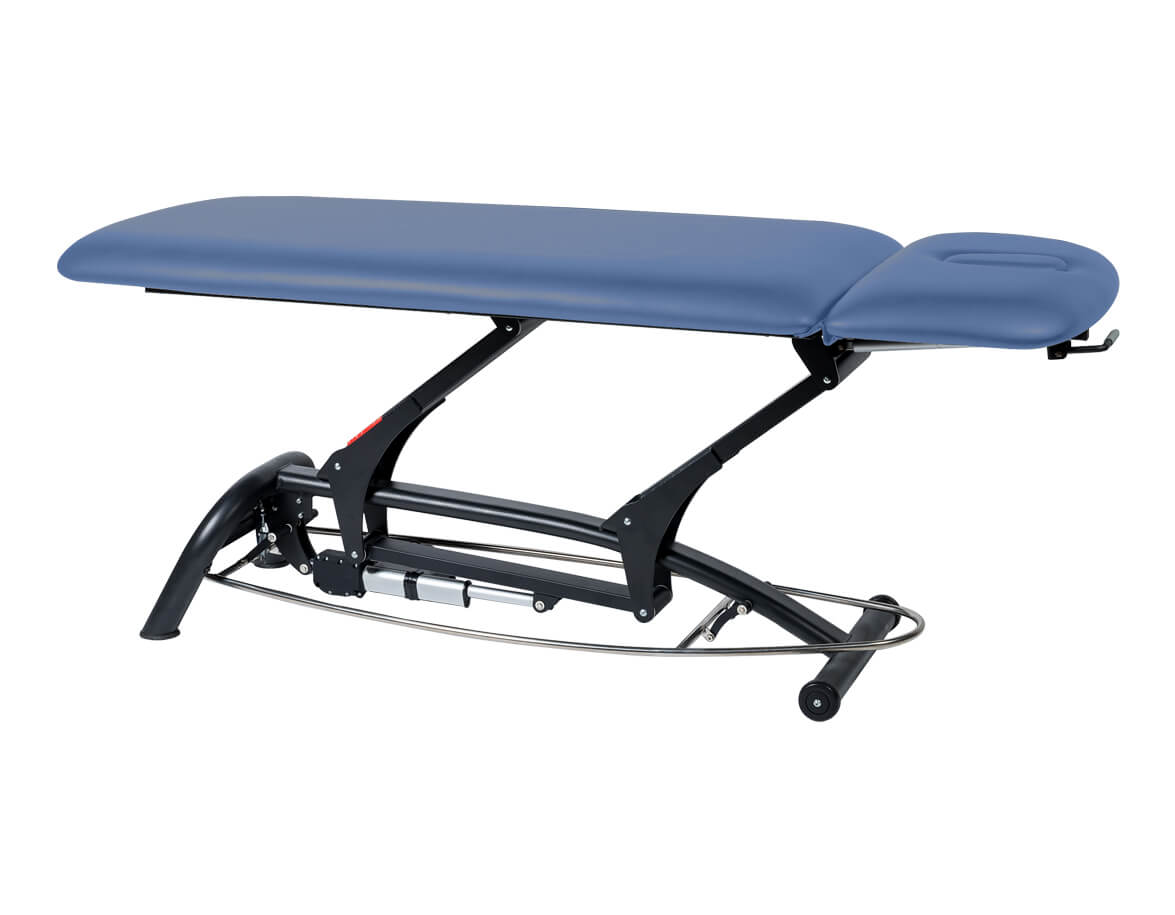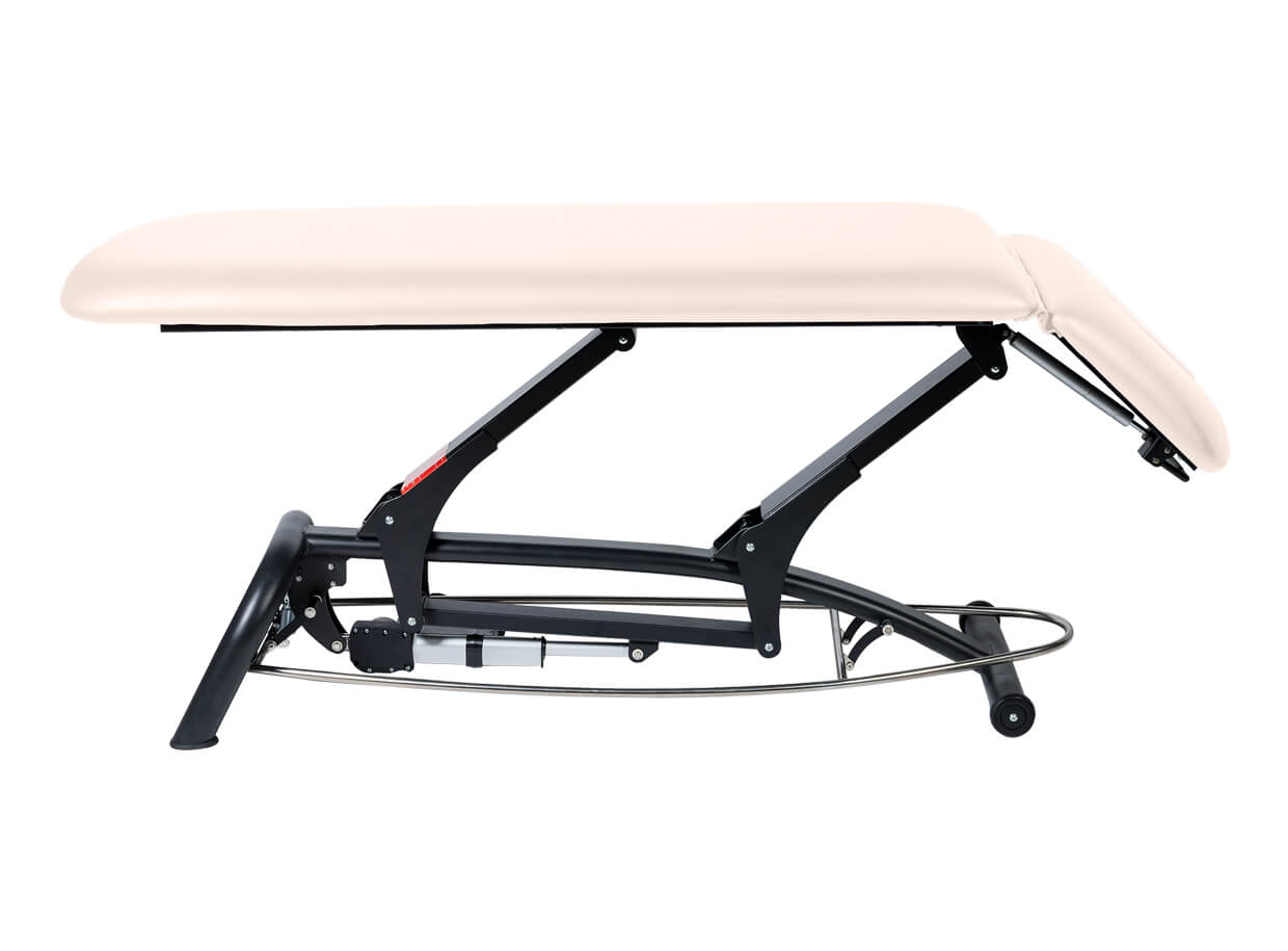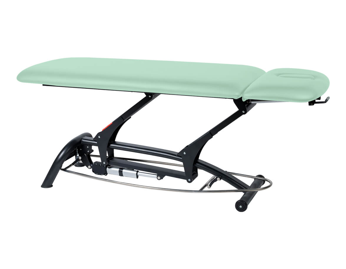 Ak rámový ovládač v ktoromkoľvek mieste pristúpite, lehátko sa posúva smerom hore. Posun lehátka smerom dole zabezpečíte podvihnutím rámového ovládača chodidlom. Rozsah výšky od 44 po 94 cm je dostatočný pre pohodlnú prácu maséra aj pre bezpečné nasadanie a zosadanie klientov z lehátka.