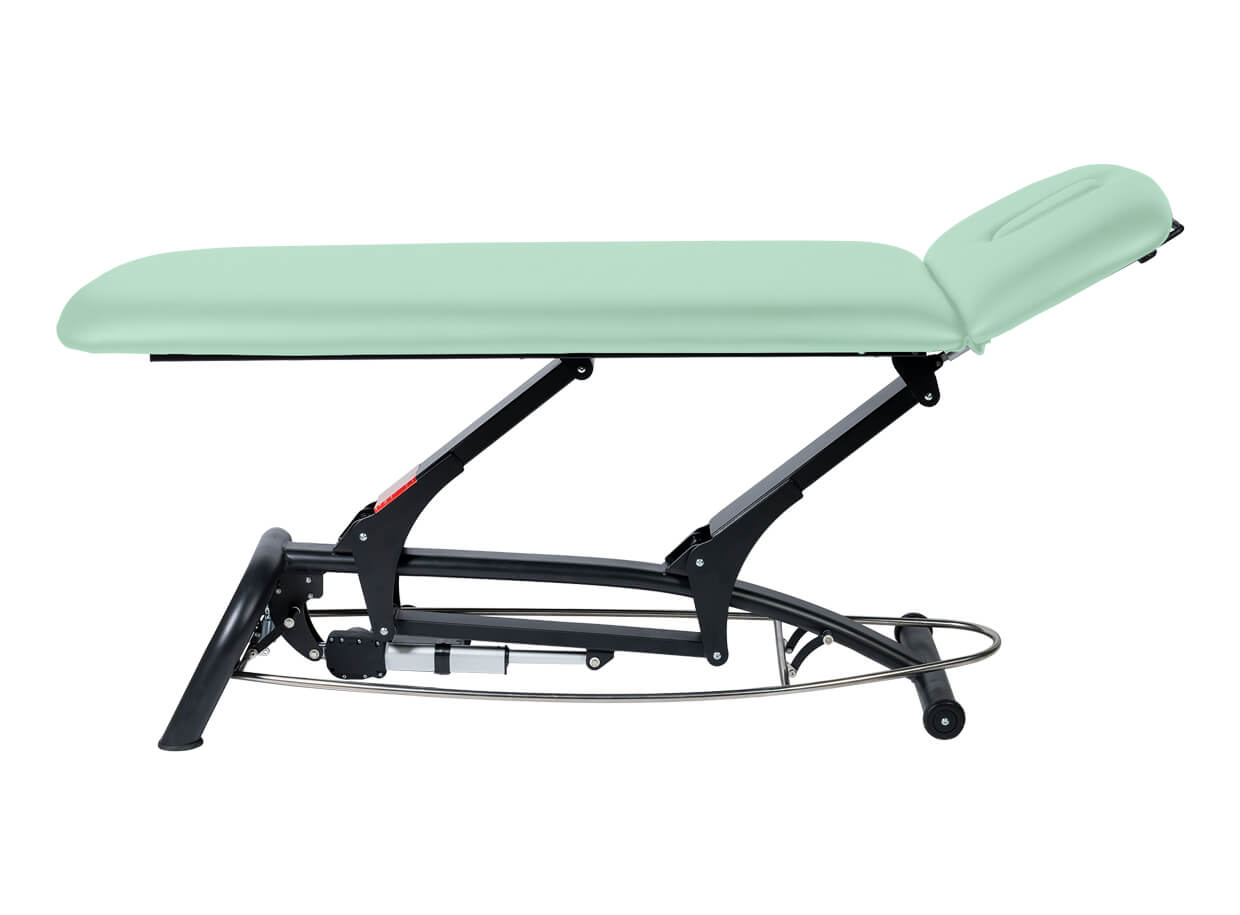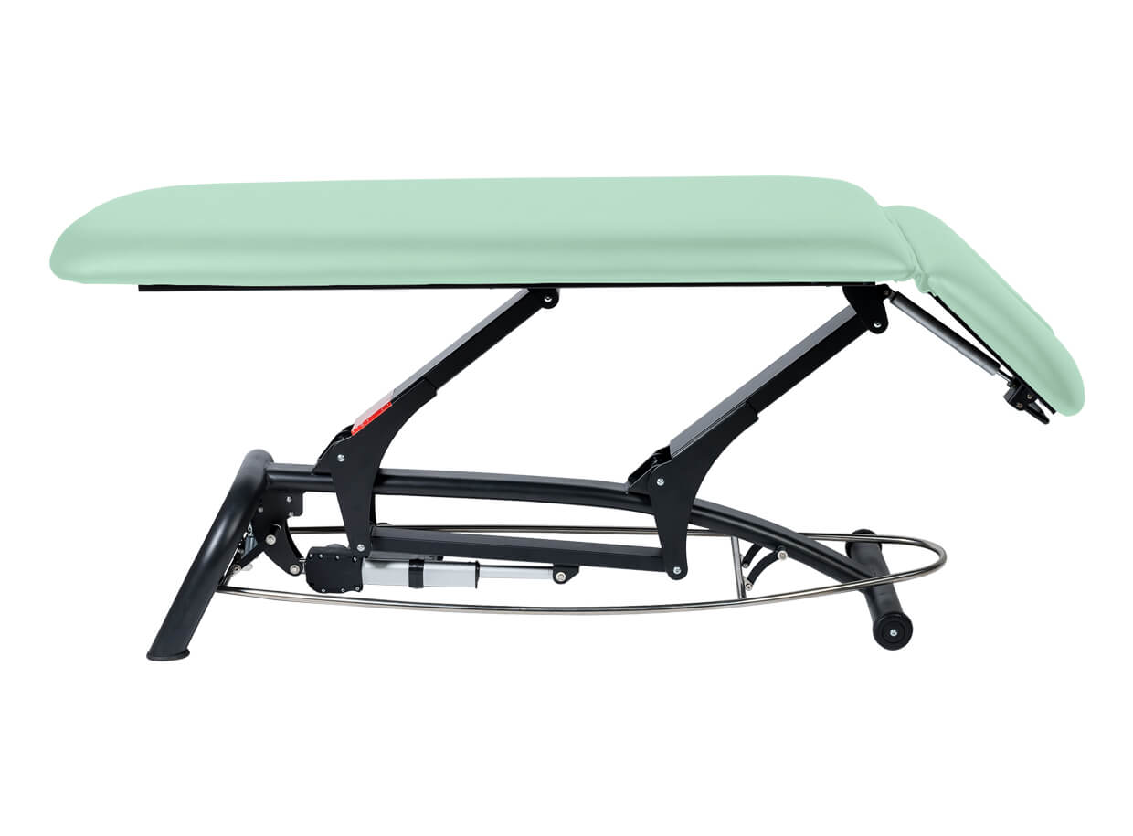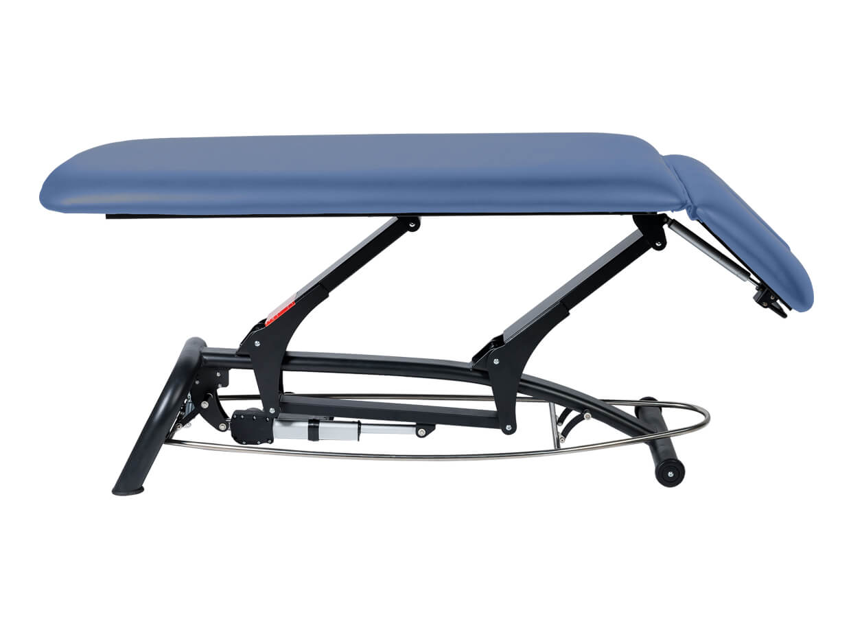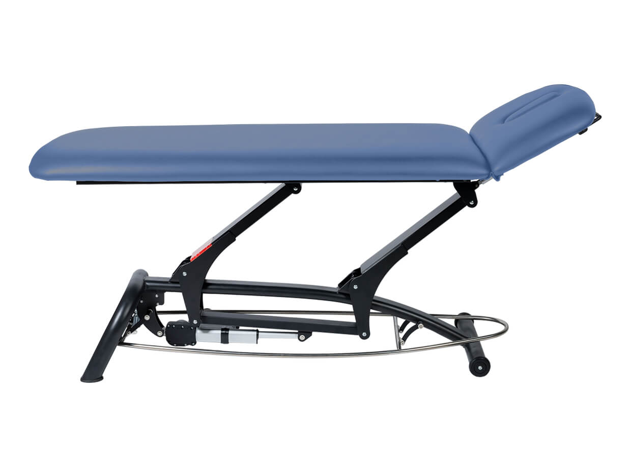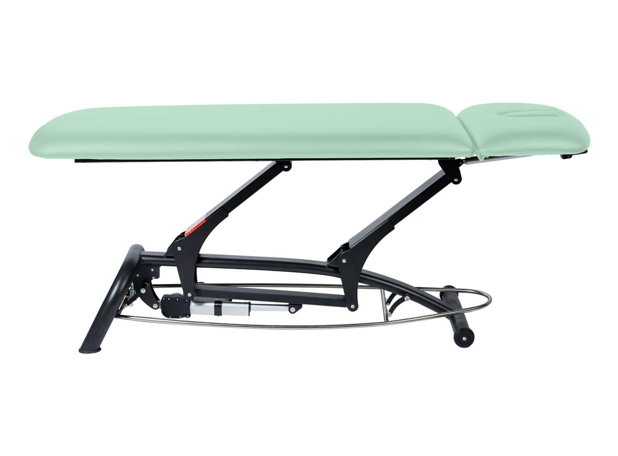 Dvojdielne elektrické lehátko s polohovateľným podhlavníkom vhodné pre masáž, fyzioterapiu alebo ako vyšetrovacie lehátko.