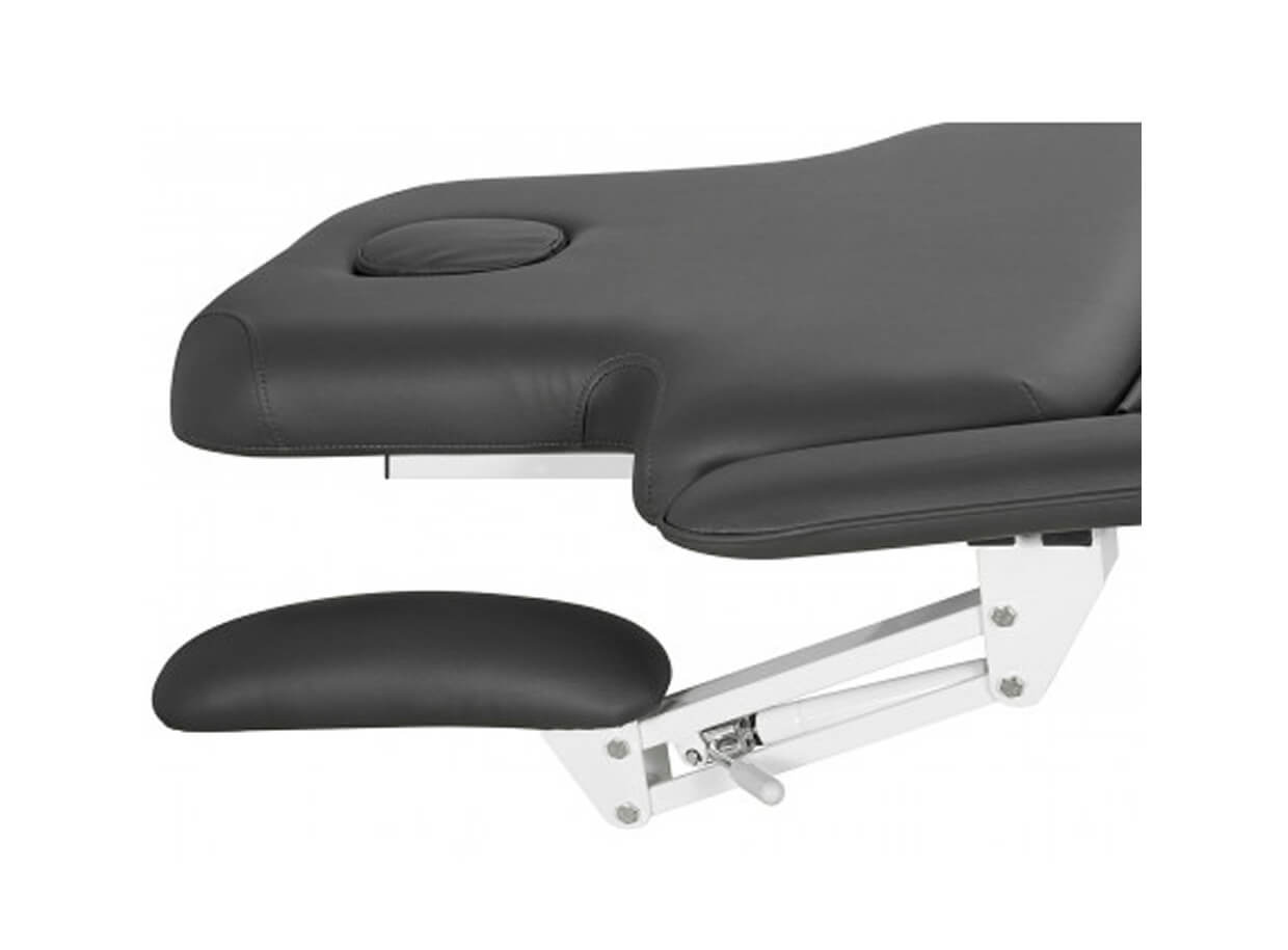 Sedacia časť je vybavená dvoma typmi opierok pod ruky. Odnímateľné opierky rúk so šírkou 11 cm na bokoch prispôsobujú svoj uhol nastaveniu lehátka. Opierky lakťov pri hlavovej časti so šírkou 12 cm využijete pri polohe klienta na bruchu. Ovládajú sa pneumatickou páčkou.