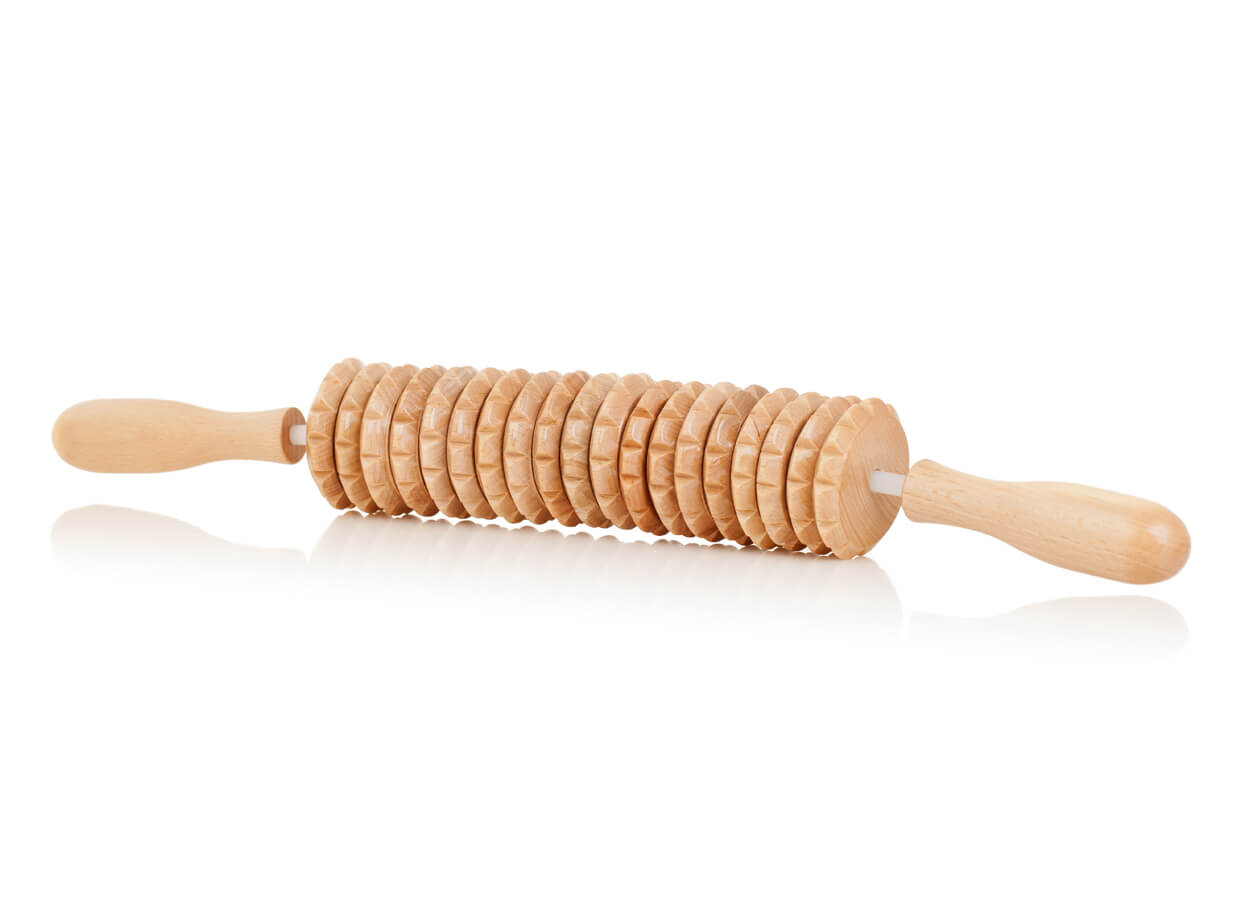 Ohybný valček na maderoterapiu s 19-timi ozubenými diskami z lakovaného bukového dreva. Stredová časť valčeka je flexibilná a prispôsobí sa preto vybranej časti tela a každej postave. Ozubené kolieska sa na stredovej časti voľne pohybujú a umožňujú jemnú masáž na rozohriatie tkanív v úvode maderoterapie.