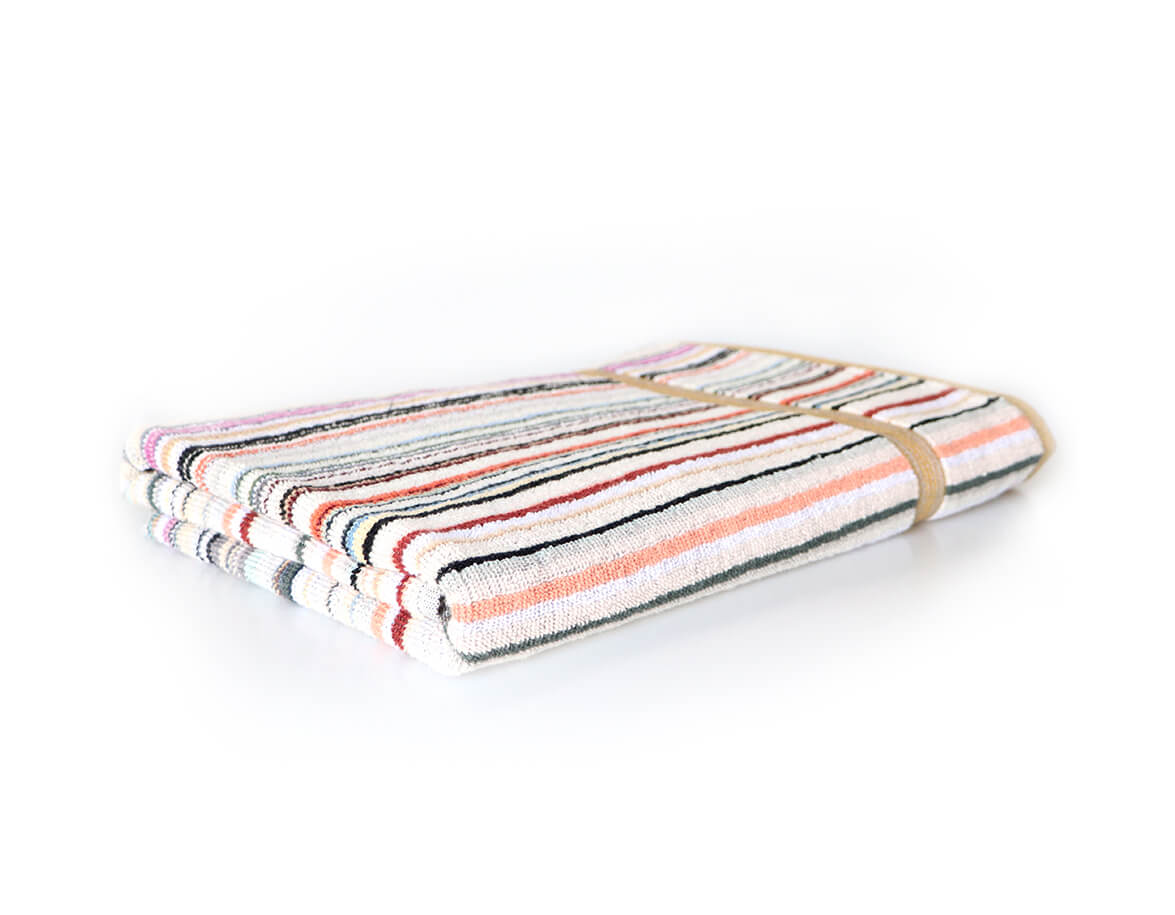 Osuška je vyrobená z froté materiálu zo 100% bavlny. Vďaka tomu má dlhú životnosť, dobre saje, rýchlo sa vysuší a je mäkká na dotyk. Po celom povrchu má osuška pruhovaný vzor v rozličných farbách. Každá z nich má originálnu farebnú kombináciu.