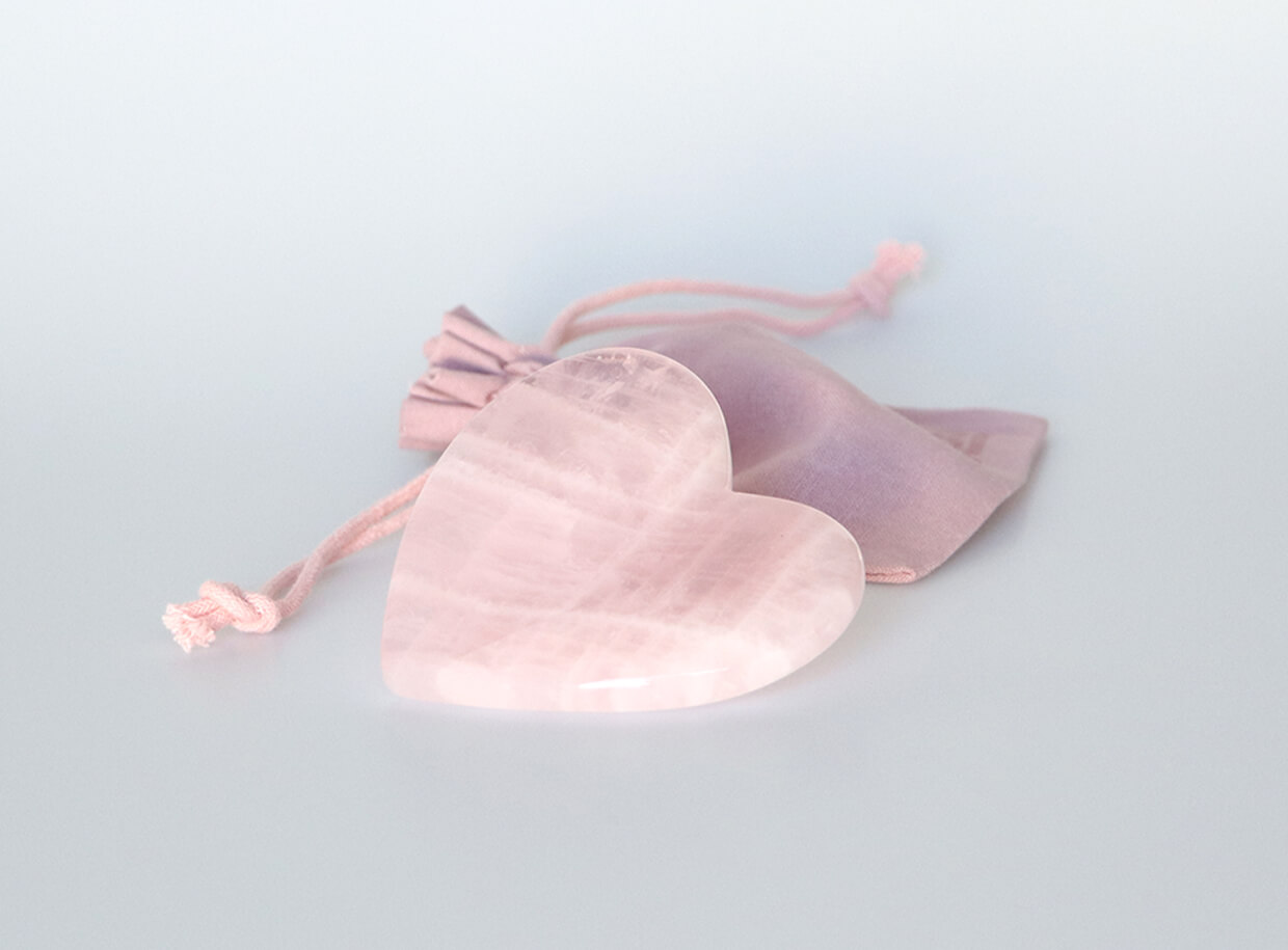 Gua sha doštička z ruženínu na masáž tváre, krku, dekoltu a rôznych častí tela. Doštička je zbrúsená do tvaru srdca a má hladké, oblé hrany, aby sa jednoducho kĺzala po pokožke. Počas masáže môžete použiť masážny olej, krém alebo emulziu.