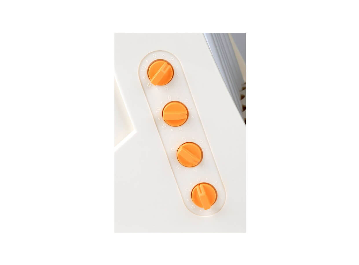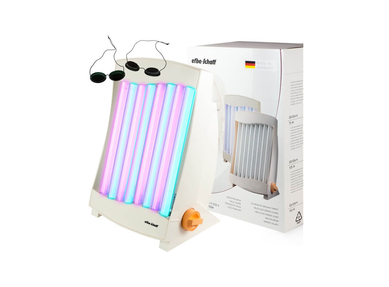 Žiarič sa skladá sa z ružových a modrých žiaroviek. Ružové žiarovky dodávajú pozitívnu energiu a priaznivo pôsobia na imunitný systém. Modré žiarovky regulujú krvný tlak a pulz, podporujú vstrebávanie kyslíka a znižujú stres. Zabudovaná reflexná clona pod lampami uľahčuje opaľovanie. Tuby žiariča sú vystavané panoramaticky pre rovnomerné ožarovanie tváre a dekoltu.