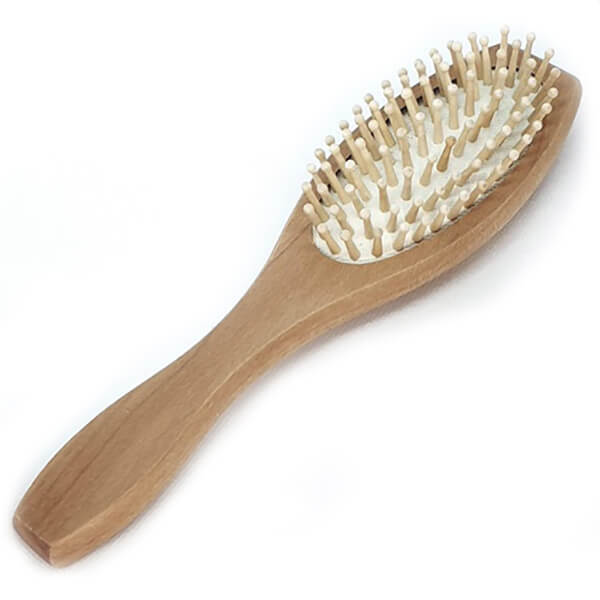 Kartáč na vlasy s drevenými pichliačmi zakončenými guličkou. Dokonale premasíruje pokožku hlavy, je šetrný k vlasom, vďaka prírodnému materiálu vlasy neelektrizujú.