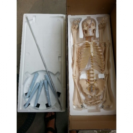 Článkovaná kostra dospelého človeka skutočnej veľkosti je ideálna na výučbu základnej ľudskej anatómie. Ruky a nohy sú odpojiteľné pre lepšie preštudovanie. Obsahuje nervové vetvy, stavcovú artériu a bedrovú platničku. Lebka má vyberateľnú čeľusť, švíkové línie a 3 vyberateľné spodné zuby. Kostra je na pevnom 40 cm širokom kovovom podstavci. Materiál je umývateľný, odolný PVC plast.