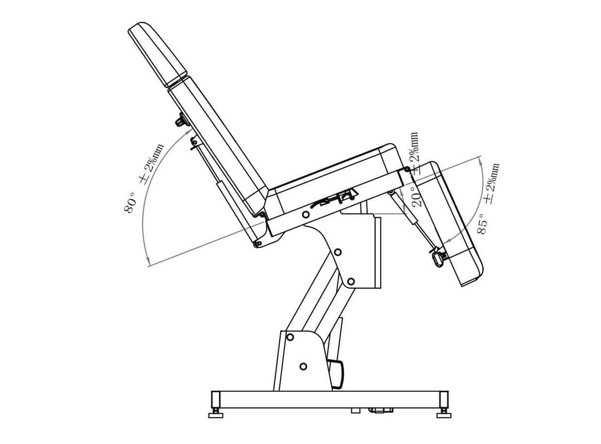 Výška sedadla 63-86 cm sa reguluje elektrickým motorom, ktorý je ovládaný ručným ovládačom (súčasť balenia). Ostatné funkcie polohovania sa nastavujú pomocou pneumatických páčok – sklon operadla do 80°, náklon sedadla (kolíska) do 20° a opierka pre nohy do 85°.