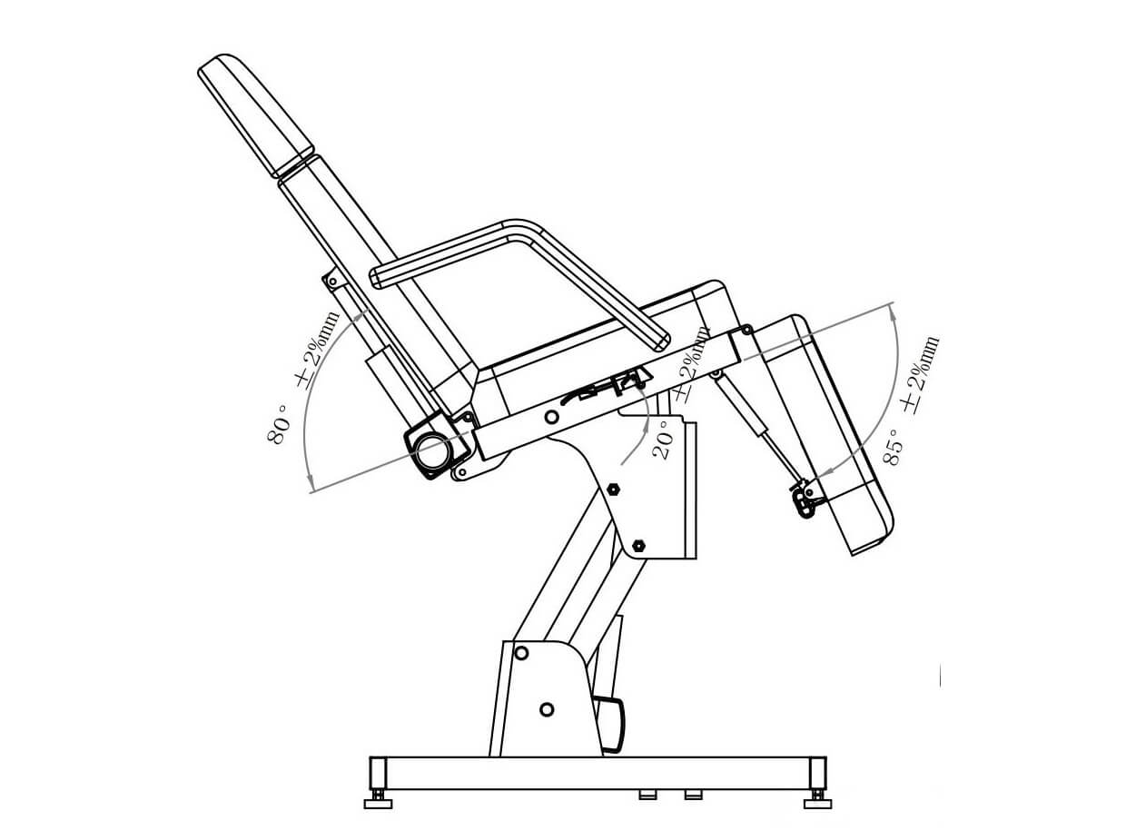 Výška sedacej časti lehátka 63-86 cm a sklon operadla až 80° sa nastavujú pomocou 2 motorov. Ovládanie je riešené praktickým ručným ovládačom (súčasť balenia). Náklon sedadla do 20° a opierky nôh do 85° sa ovláda manuálne pneumatickou páčkou.