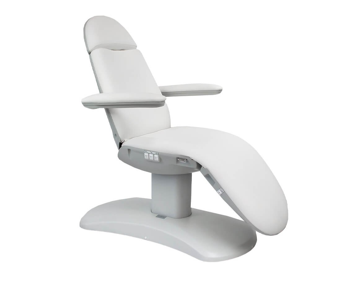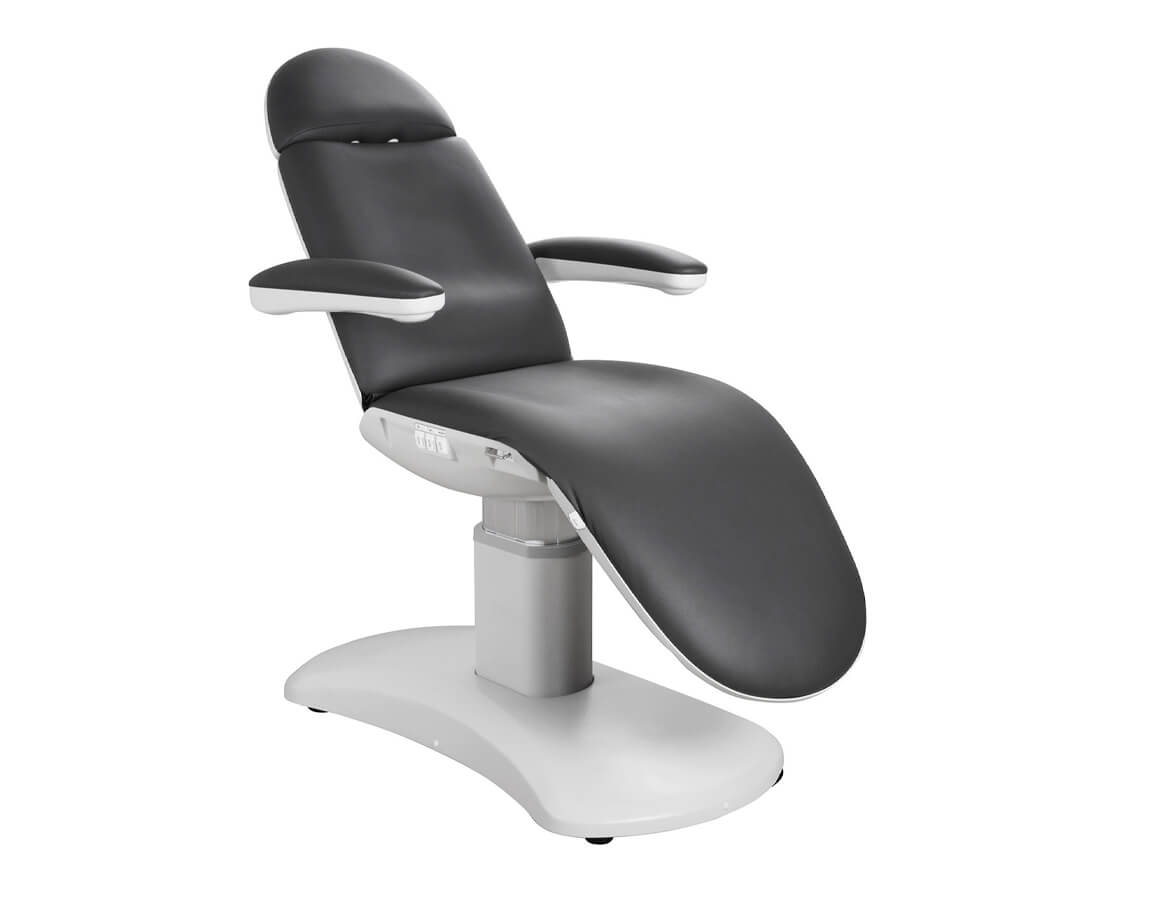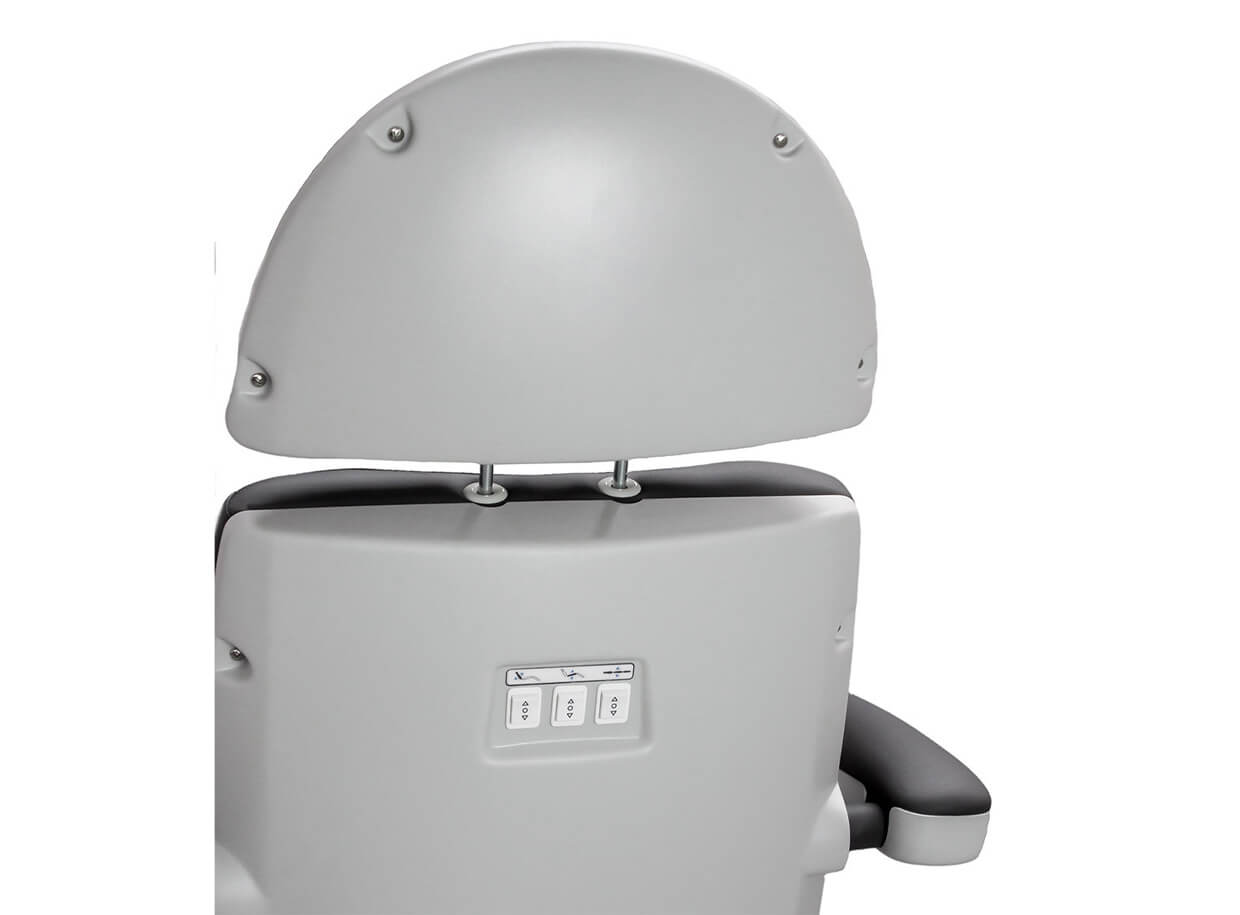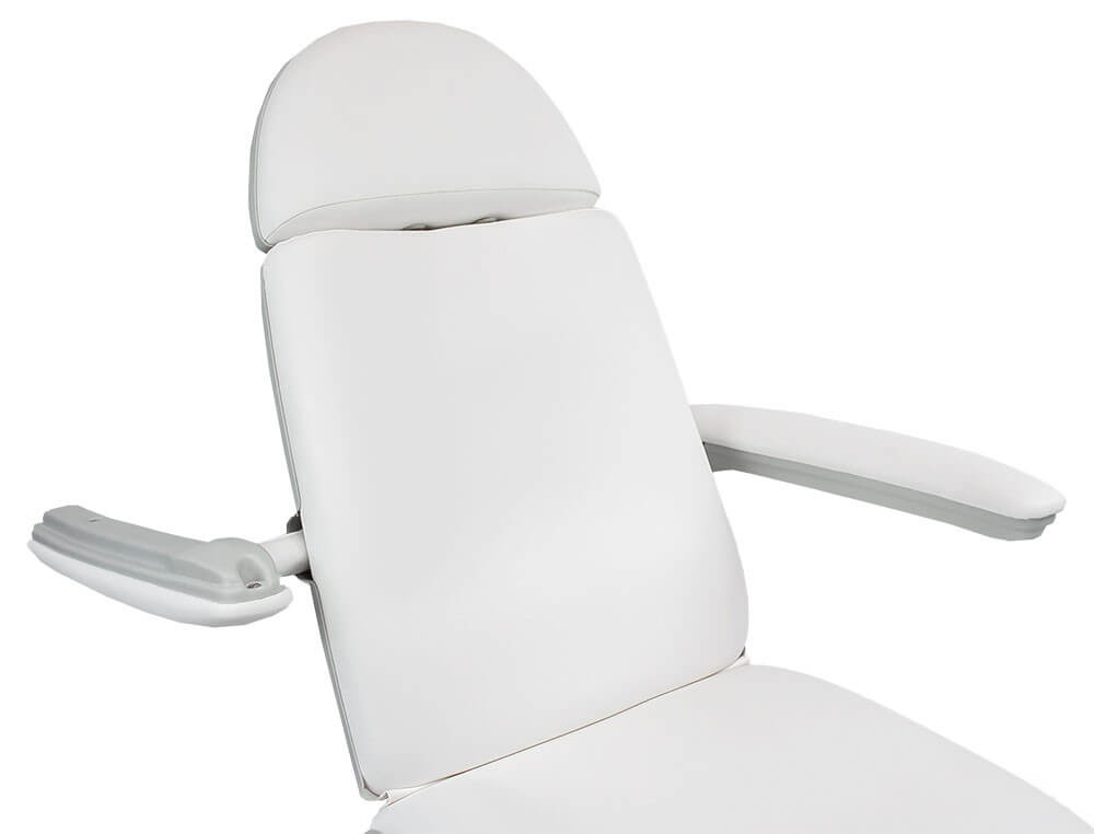 Hlavová opierka lehátka je vysúvateľná a prispôsobí sa tak i vyššej postave. Výklopné lakťové opierky umožňujú bezproblémový prístup ku klientovi. Kreslo je čalúnené odolnou syntetickou kožou s ľahkou údržbou a čistením. Anatomicky tvarované polstrovanie zaručuje pohodlný posed.