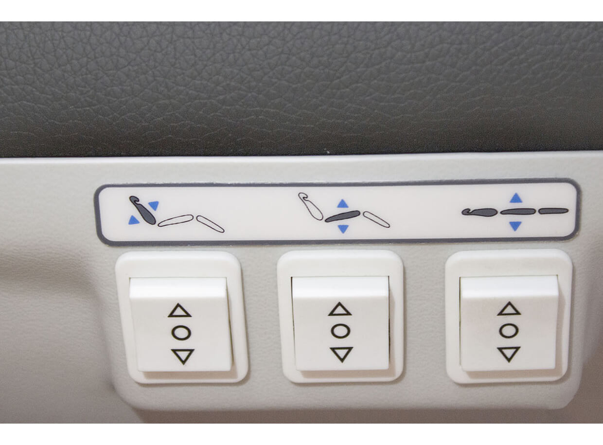 Praktické prepínacie tlačidlá na ovládanie jednotlivých motorov sú zabudované na bočných častiach operadla a sedacej časti. Sedacia a nožná časť je prepojená pre čo najpríjemnejší posed. Lehátko sa zo základných 67 cm dá zdvihnúť až do výšky 88 cm.