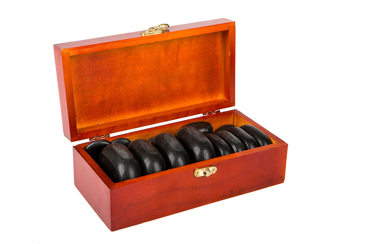 20 kusová základná sada čadičových kameňov v praktickej drevenej krabičke. Lávové kamene sú opracované do rovnakého tvaru v rámci jednotlivých veľkostí. Sopečný pôvod zabezpečuje lávovým kameňom vysokú tepelno-akumulačnú schopnosť.