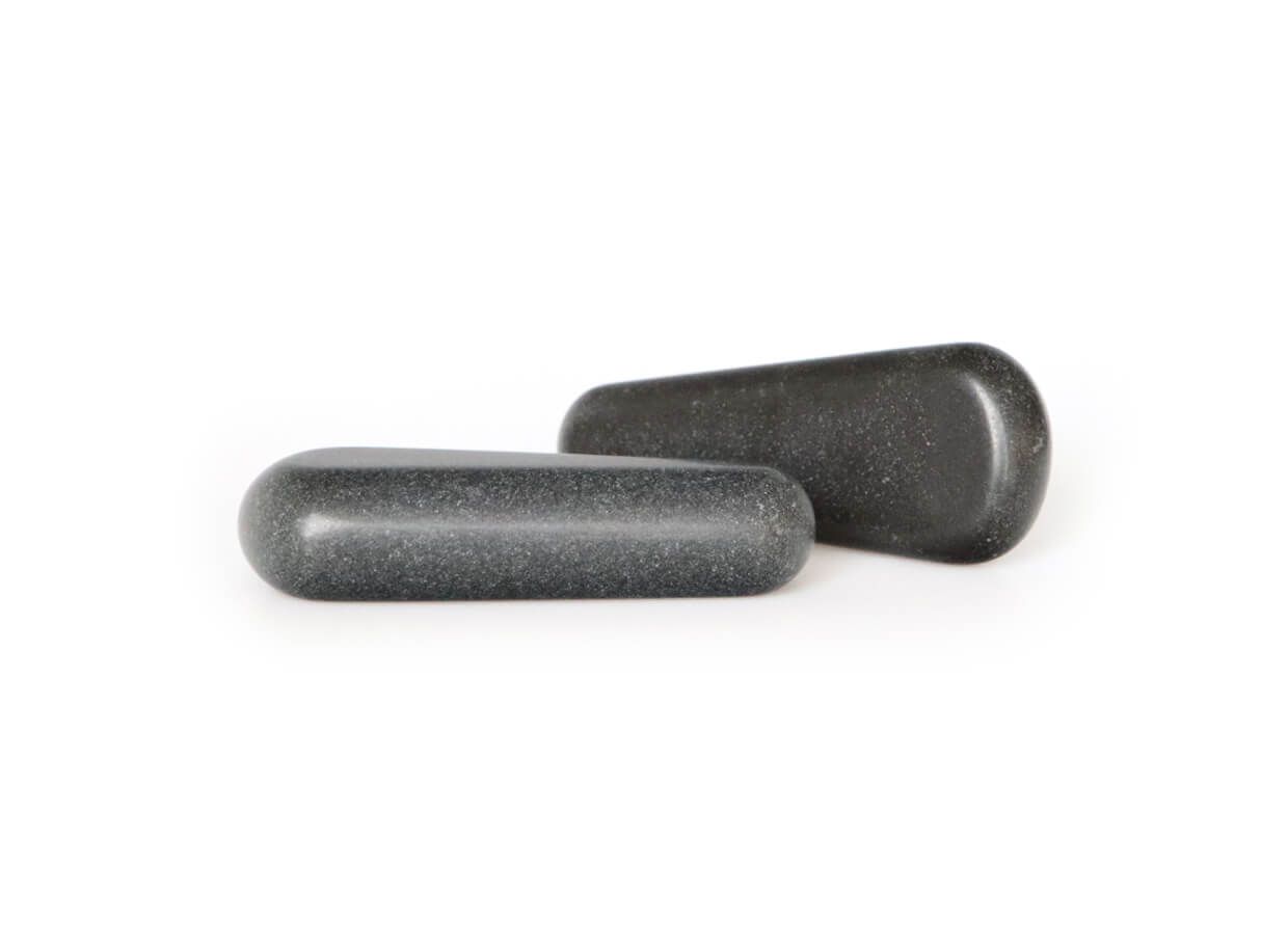 Masážne lávové kamene v tvare klinu so zúženým koncom na masáž spúšťacích bodov. Kamene sú ručne vyrobené z prírodného čadiča, lávovej horniny, ktorá sa rýchlo nahreje a dlho udržiava teplo. Sú hladké a dôkladne leštené, aby sa jednoducho kĺzali po pokožke.