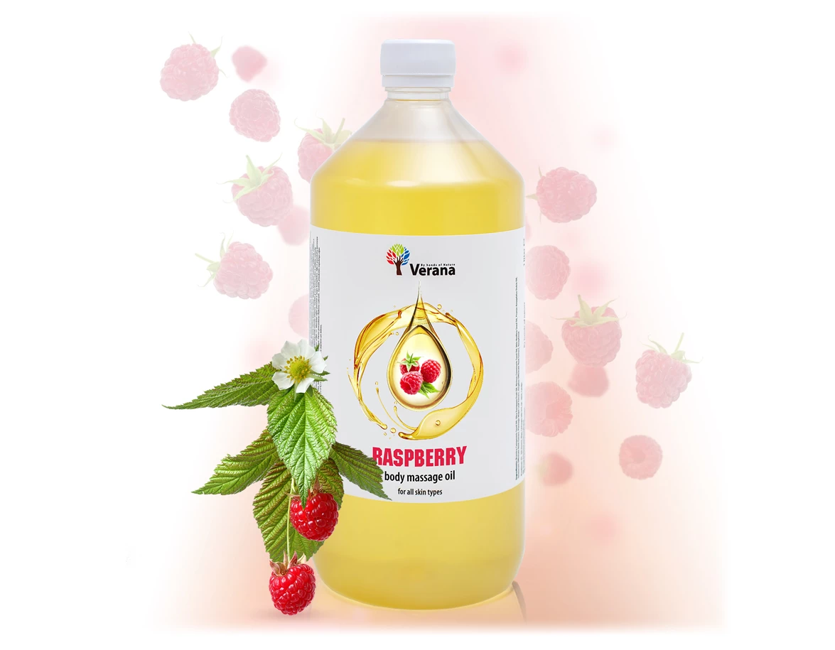 Masáž s prírodným olejom z malín má regeneračný, vyživujúci a omladzujúci účinok. Obsahuje 100% prírodné olejové extrakty z listov brusníc, bobulí noni, moruše, arónie, bazy, semien granátového jablka, čučoriedok a černíc. Spojením týchto zložiek vzniká účinný prípravok na komplexnú starostlivosť o pokožku.