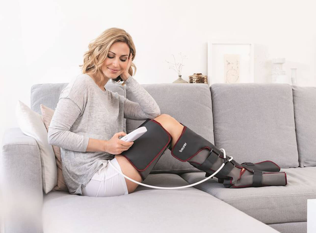 Prístroj má zabudované vzduchové vankúše, ktoré sa striedavo nafukujú a vyfukujú a nohám poskytujú uvoľňujúcu tlakovú masáž. Účinne stimuluje krvný obeh, vďaka čomu sú nohy dobre prekrvené, odstráni bolesť a napätie svalstva a tiež pomáha predísť tvorbe kŕčových a metličkových žíl. Veľkosť manžiet sa jednoducho prispôsobí pomocou suchého zipsu.