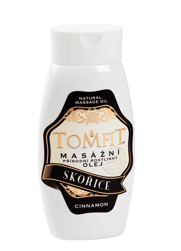 TOMFIT prírodný rastlinný olej so škoricovou silicou je určený pre masáže celého tela s výnimkou tváre.