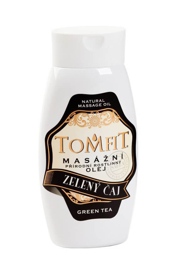 TOMFIT prírodný rastlinný olej s extraktom zeleného čaju je určený pre masáž celého tela.