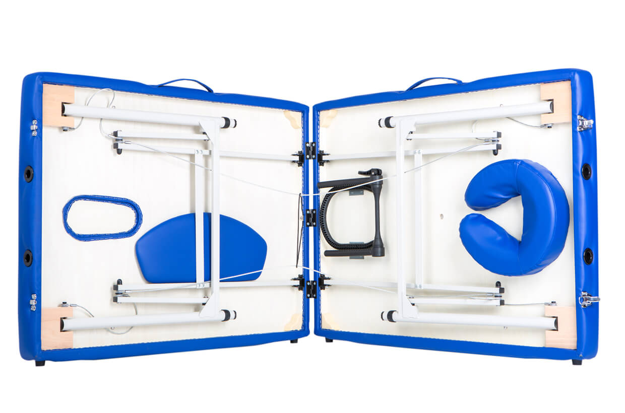V cene lehátka je zahrnuté aj príslušenstvo, pozostávajúce z transportnej tašky, podhlavníka, držiaka podhlavníka a opierky rúk. Všetko príslušenstvo je odnímateľné a možno ho uložiť do priestoru vo vnútri samotného masážneho lehátka. Pre bezpečný a pohodlný transport sa lehátko aj s príslušenstvom dá jednoducho a rýchlo zložiť do praktickej transportnej tašky z pevného textilného materiálu s popruhmi, ktorá spoľahlivo chráni predovšetkým koženkový poťah pred mechanickým poškodením a zašpinením a umožní mať všetko vybavenie pekne pohromade.