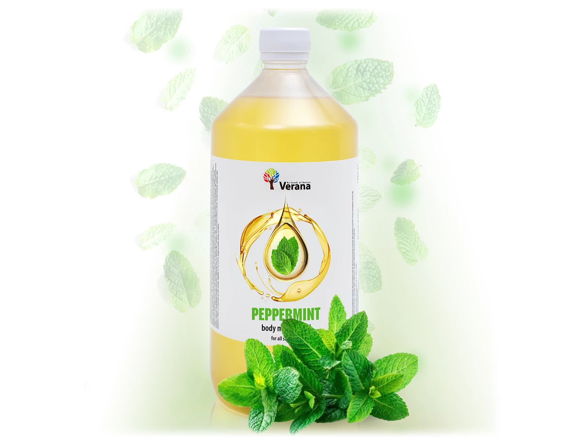Masážny olej s esenciálnym olejom z mäty priepornej obsahuje množstvo blahodarných látok, ako prírodný mentol, vitamíny, minerály, kyseliny a stopové prvky. Pokožku udržiava hydratovanú, vyživenú a sviežu.