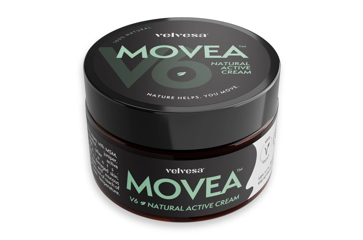 Funkčný krém MOVEA V6 od velvesa so 100% prírodným zložením vyvinutý na úľavu od bolesti svalov a kĺbov, stuhnutosti, únavy a svalovej horúčky, modrín a opuchov. Základ z rastlinných olejov a masiel bohatý na výživné látky ošetrí pokožku a kombinácia viacerých účinných prírodných zložiek rieši problémy s pohybovým aparátom bez pocitu nadmernej mastnoty a fľakov na oblečení.
