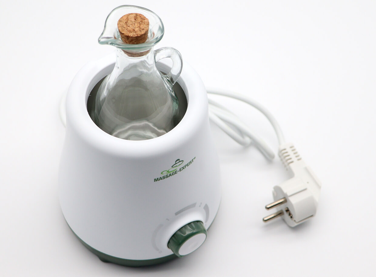 Ohrievač masážnych olejov so sklenenou karafou je neodmysliteľnou pomôckou pre masážne a wellness prevádzky, slúži na ohrev a udržiavanie požadovanej teploty masážnych olejov.