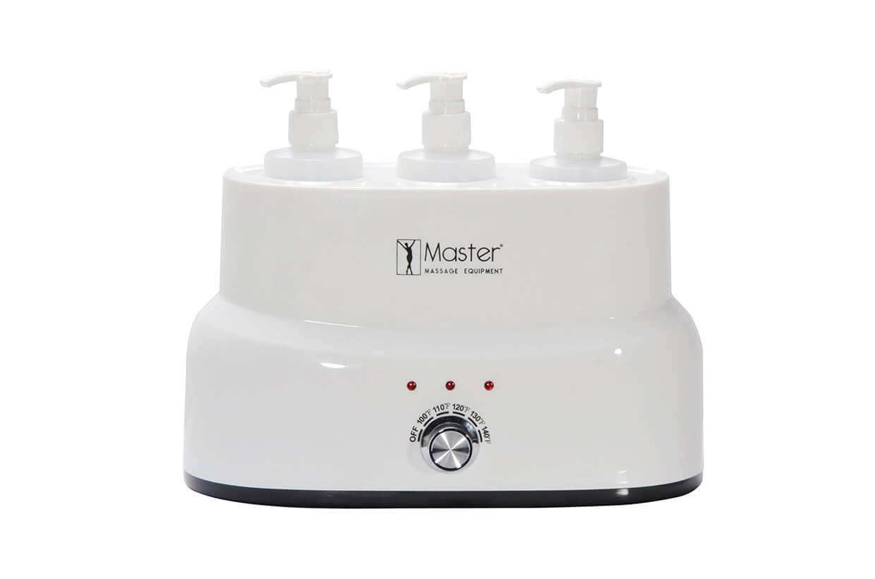 Elektrický ohrievač olejov a masážnych krémov s troma nádobkami s dávkovačom. V peknom oblom dizajne s ľahkým ovládaním a jednoduchou údržbou. Vyberte si z piatich nastavení teploty: 40, 45, 50, 55 a 60°C a ohrievač bude zvolenú teplotu udržovať. Na dosiahnutie teploty 60°C potrebuje prístroj približne 20 minút. Po dosiahnutí požadovanej teploty sa automaticky zastaví ohrev a prístroj spustí zahrievanie, ak teplota zahrievaných olejov klesne pod nastavenú teplotu.