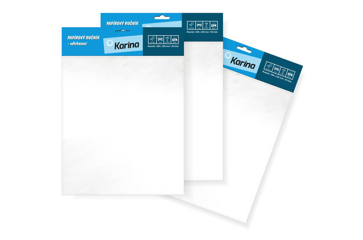 Odtrhávacie papierové uteráky KARINA s eurovýsekom na zavesenie majú univerzálne použitie. Sú vhodné na utieranie umytých rúk, na čistenie skla, na zotretie nečistôt, olejov, atď.