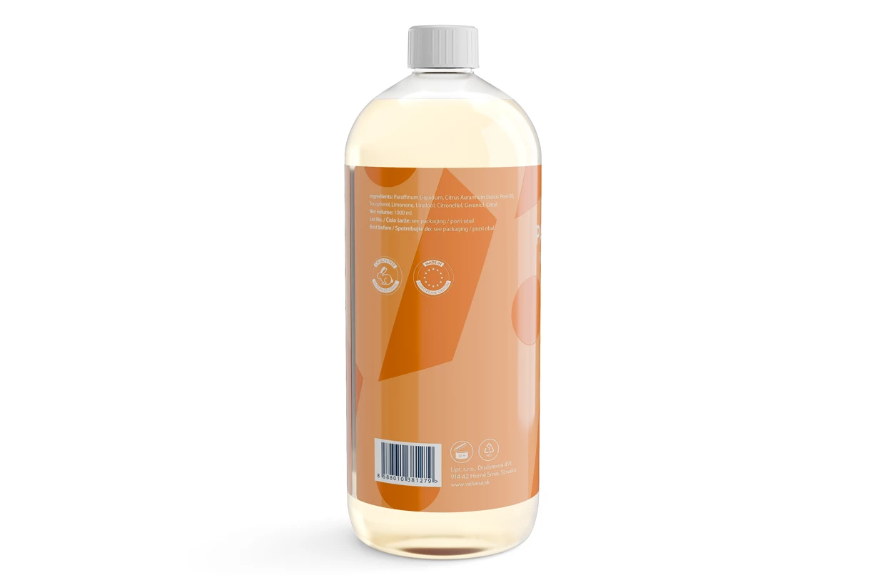 Parafinea Orange od velvesa je masážny olej s povzbudzujúcim vplyvom na náladu a psychiku, ktorý zjemní, ošetrí a tonizuje pokožku. Nájdete v ňom iba čistý parafínový olej s pridaným prírodným vitamínom E a 100 % esenciálny olej z kôry sladkého pomaranča. Žiadne umelé vône a konzervanty.