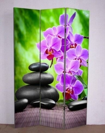 3-dielny paraván Kamene a orchidea s fotopotlačou z oboch strán.