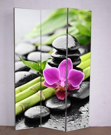 3-dielny paraván Pokojná myseľ s fotopotlačou z oboch strán.