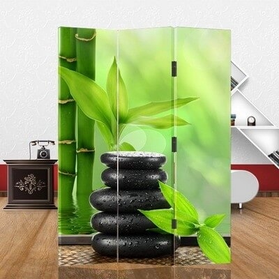 3-dielny paraván Bambus a kamene s fotopotlačou z oboch strán.