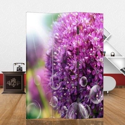 3-dielny paraván Fialové kvietky s fotopotlačou z oboch strán.