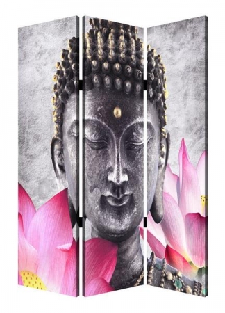 3-dielny paraván Hlava Budhu s fotopotlačou z oboch strán.