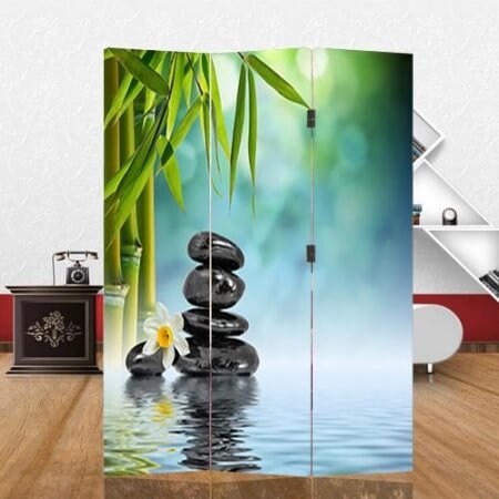 3-dielny paraván Bambus vo vetre s fotopotlačou z oboch strán.