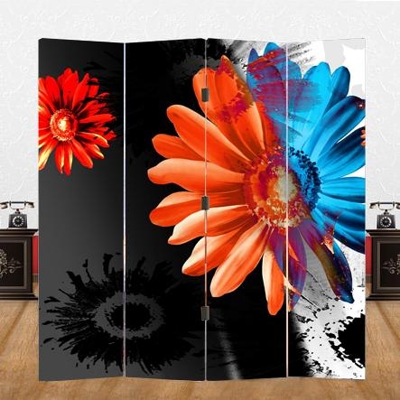 4-dielny paraván Gerbera s fotopotlačou z oboch strán.